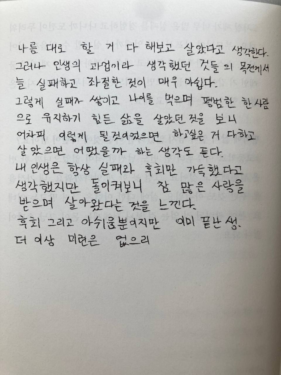 내 인생은 항상 실패와 후회만 가득했다고 생각했지만, 돌이켜보니 참 많은 사랑을 받으며 살아왔다는 것을 느낀다.