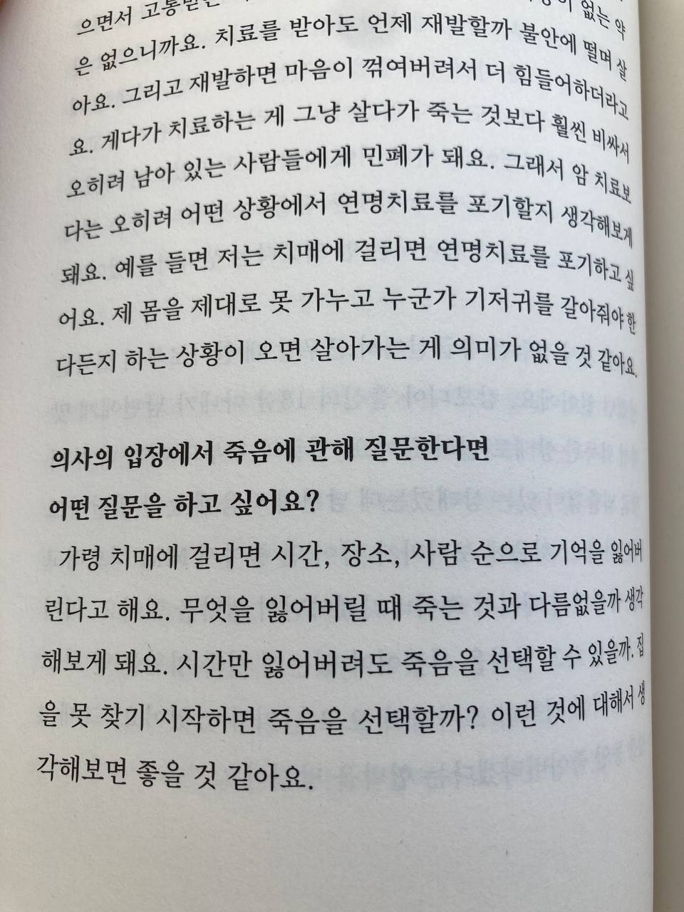 의사의 입장에서 죽음에 관해 질문한다면 어떤 질문을 하고 싶어요?