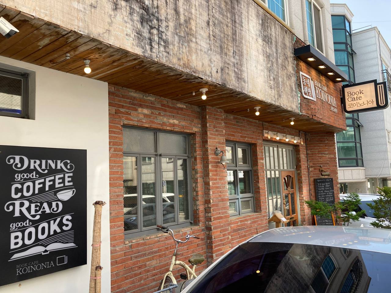 수십명의 책장지기들이 판매하는 책장이 모여 있는 책방. 코이노니아는 헬라어로 공유하다, 남과 나누다, 공통, 다같이라는 뜻이다. 그래서 코이노니아 책장에는 각각 책장을 운영하는 사람들의 이름(별명)이 적혀있다. 수십명의 사람들이 각자 자신의 책장에 책을 소개하고, 책방을 운영하고 있는 모습이 신기했던 곳. 음료 외 떡볶이 등 간단한 음식도 판매한다.