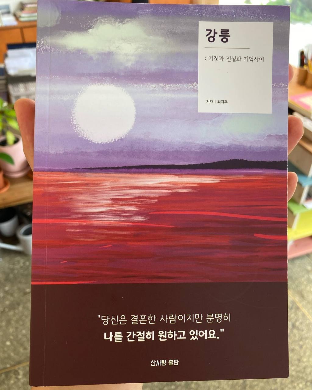 가족 여행으로 강릉에 온 주인공에게 홀연히 한 여자가 나타난다. 여자는 주인공 주변에 홀연히 나타났다 사라지기를 반복하는데… 붉게 물든 바다와 같은 책. 충격과 공포의 스릴러 소설 <강릉>. 올여름 강릉과 함께 시원한 여름을 보내보세요!