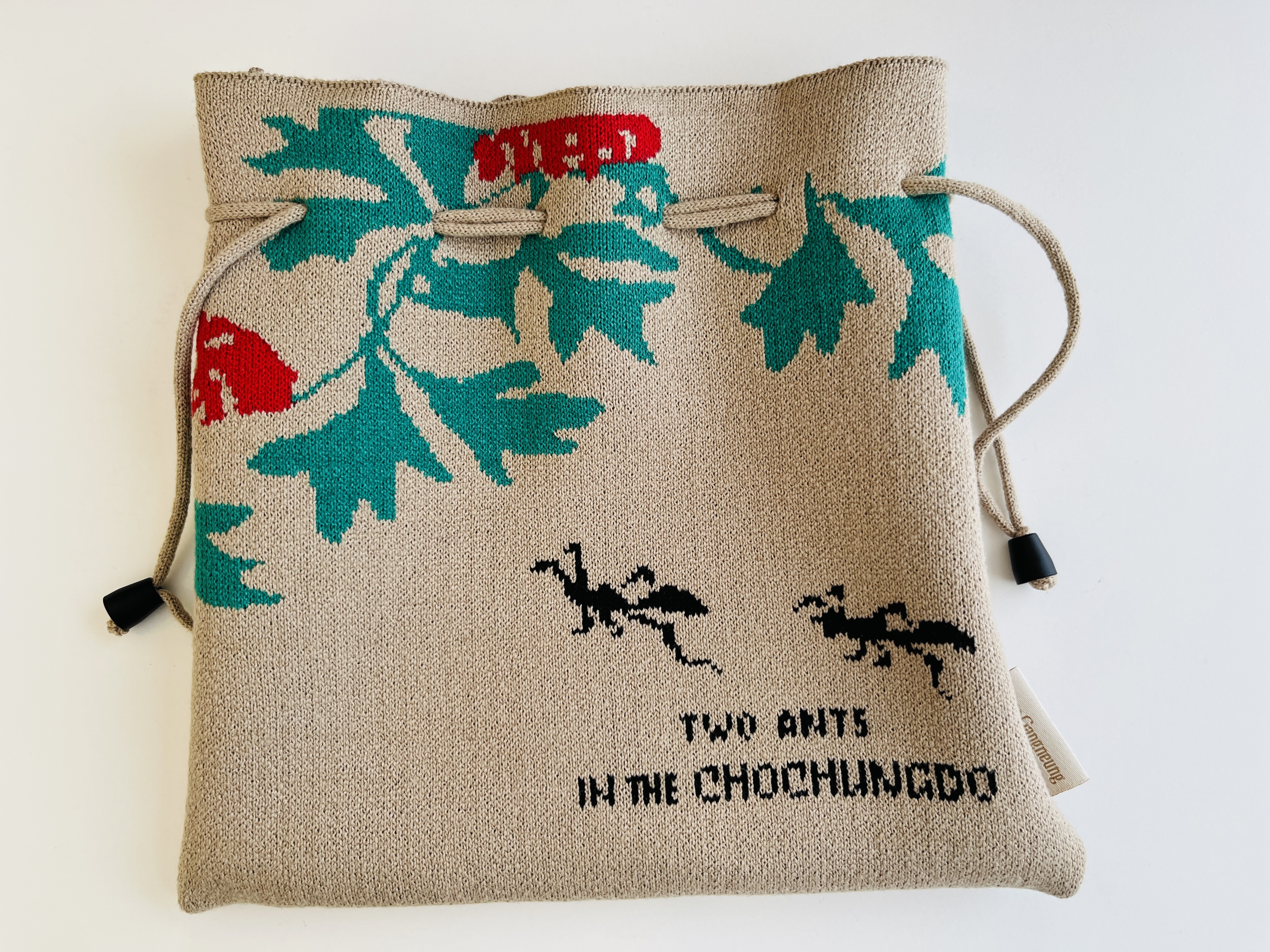 강릉 출신 작가이자 시인인 신사임당의 풀과 곤충 그림(초충도)으로 만든 주머니. 사진에는 담기지 않는데 재질이 엄청 보들보들하다. 보통 겉면만 신경 쓰는 경우가 많은데, 내부 역시 다른 패턴으로 제작하여 주머니를 만들 때 신경을 많이 쓴게 느껴진다. 주머니 중 누런색은 개미가, 보라색은 소똥구리가 그려져있다. 개미는 여왕개미를 중심으로 일사불란하게 생활하는 당시 중요한 사회적 가치였던 임금과 신하의 의리 충(忠)을, 쇠똥구리는 껍질이 단단하여 갑(甲)옷을 입은 곤충이라고 1등을 상징한다.