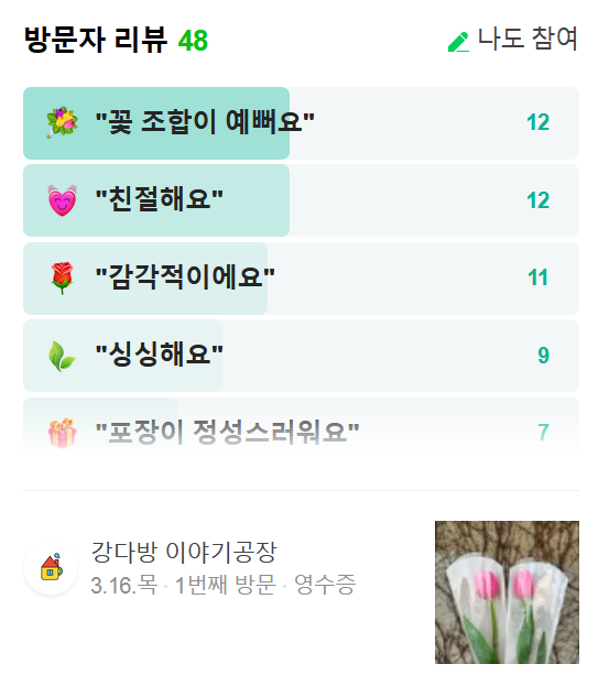문득 마케팅 이야기는 안 하고 강다방 이야기만 하고 있는게 아닌가 싶다. 그래서 좀 핑계를 대보면, 마케팅은 하늘에서 뚝딱 떨어지는 것이 아니다. 이런 경험과 이야기들 쌓이다보면 마케팅이 아닌가 싶다. 이런 경험과 고민을 해야 진정성 있는 마케팅 방법이 나온다고 생각한다. 마케팅에 정답은 없지만 강다방은 이렇게 생각한다. 아무튼 마케팅과 관련된 이야기를 해보면, 특별함& 앤플라워 사장님은 꽃집을 15년 넘게 운영하셨고 (이거 좀 하고 그만두고, 저거 좀 하다 그만두는 강다방은 한 가지 일을 오래하는 사람들을 보면 존경스럽다) 현재는 꽃집을 운영하는 것에 대해서 조금은 지친 상황이었다. 그래서 꽃과 함께 한식 디저트를 결합하는 방법을 고민하고 계셨다.