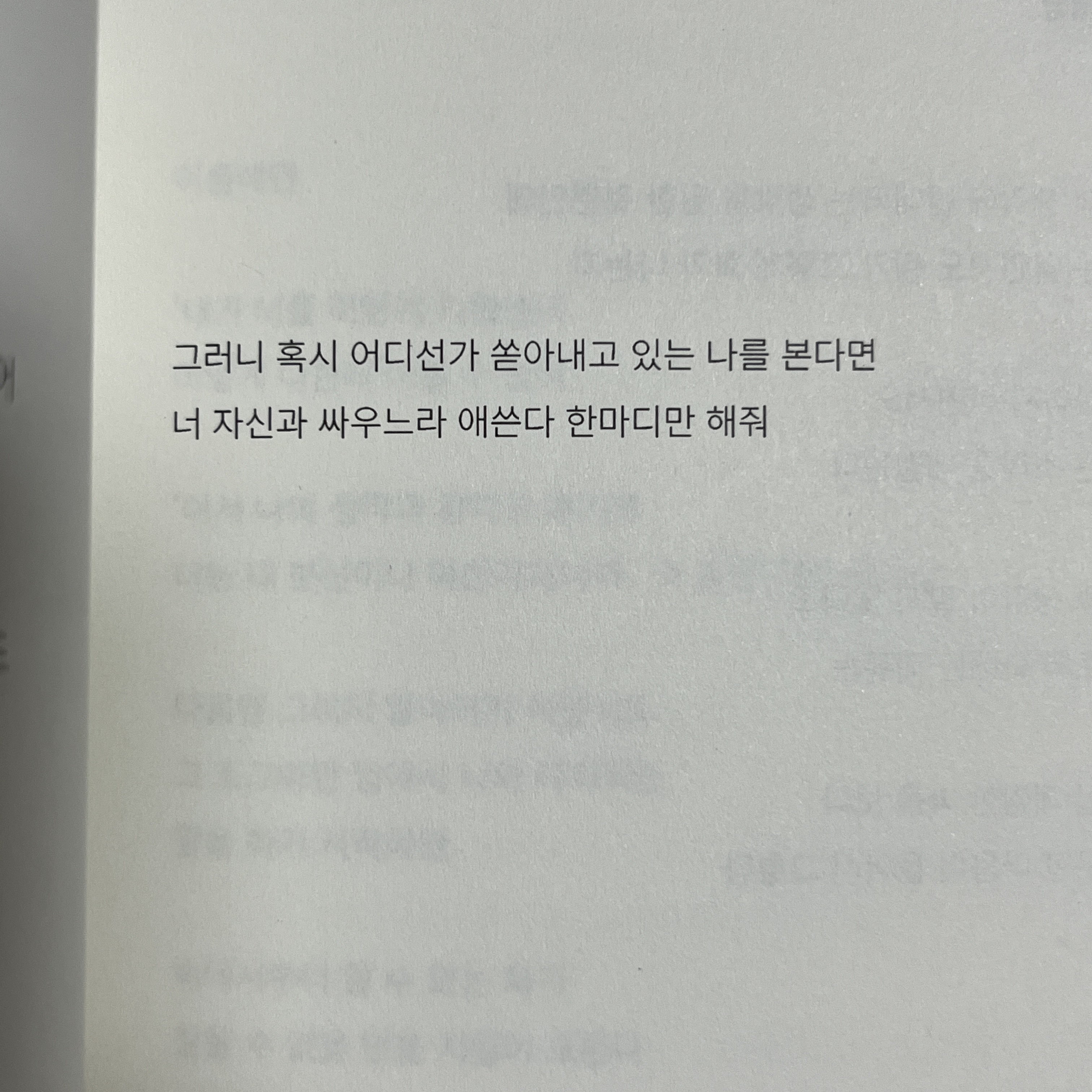 너 자신과 싸우느라 애쓴다 한마디만 해줘