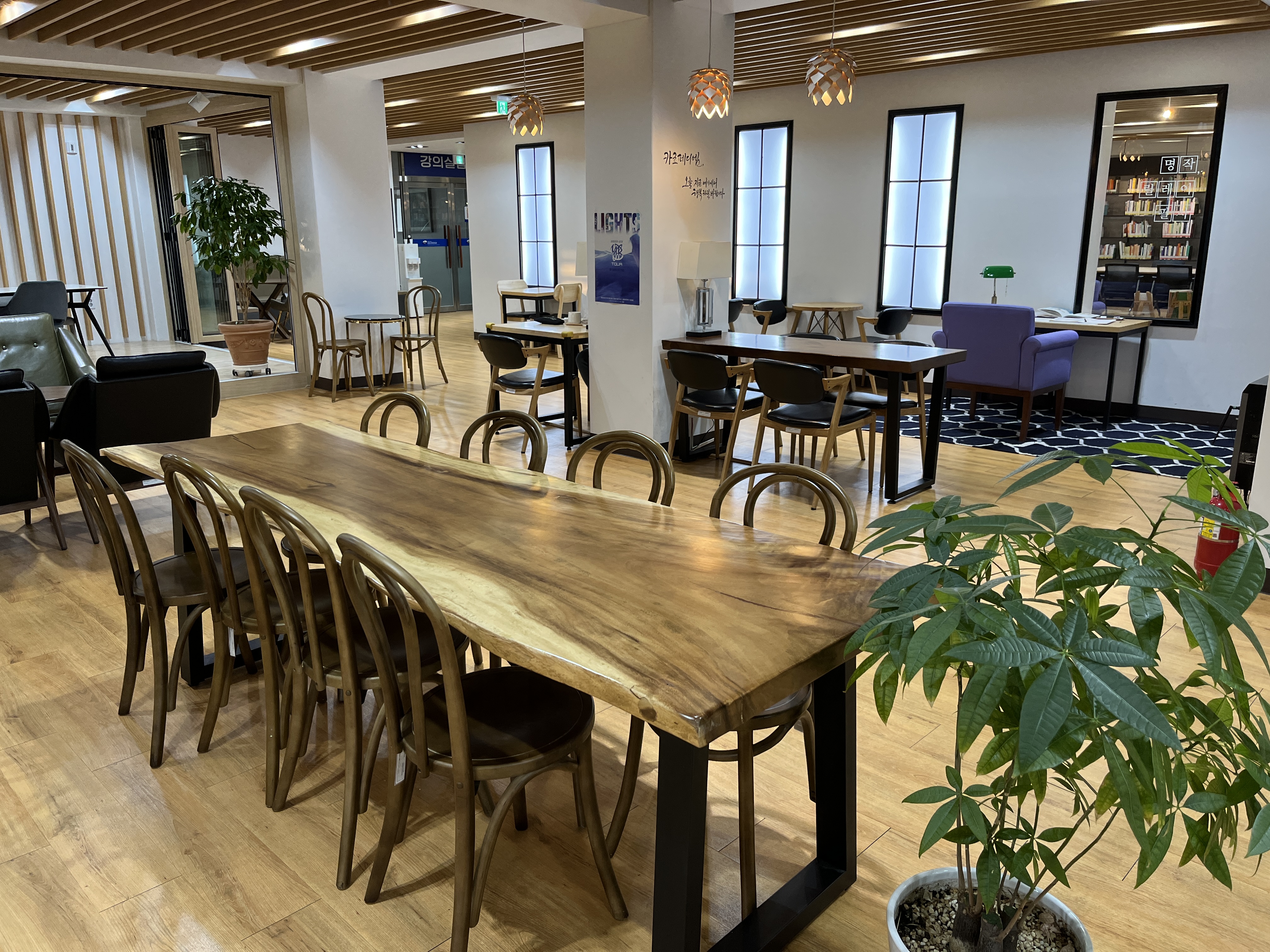 강릉교육문화관 1층에 있는 북카페. 뜨거운 아메리카노를 아프리카노, 차가운 아메리카노를 시베리카노라고 표현하게 재밌었다. 강원도교육청에서 운영하는 교육문화관은 몇 년 전, 리모델링 공사를 진행하며 쾌적한 공간이 되었다. 한 쪽에는 필사할 수 있는 공간이 있으며, 창문 쪽 정성스럽게 기르고 있는 화분들을 보면 괜히 기분이 좋아진다.