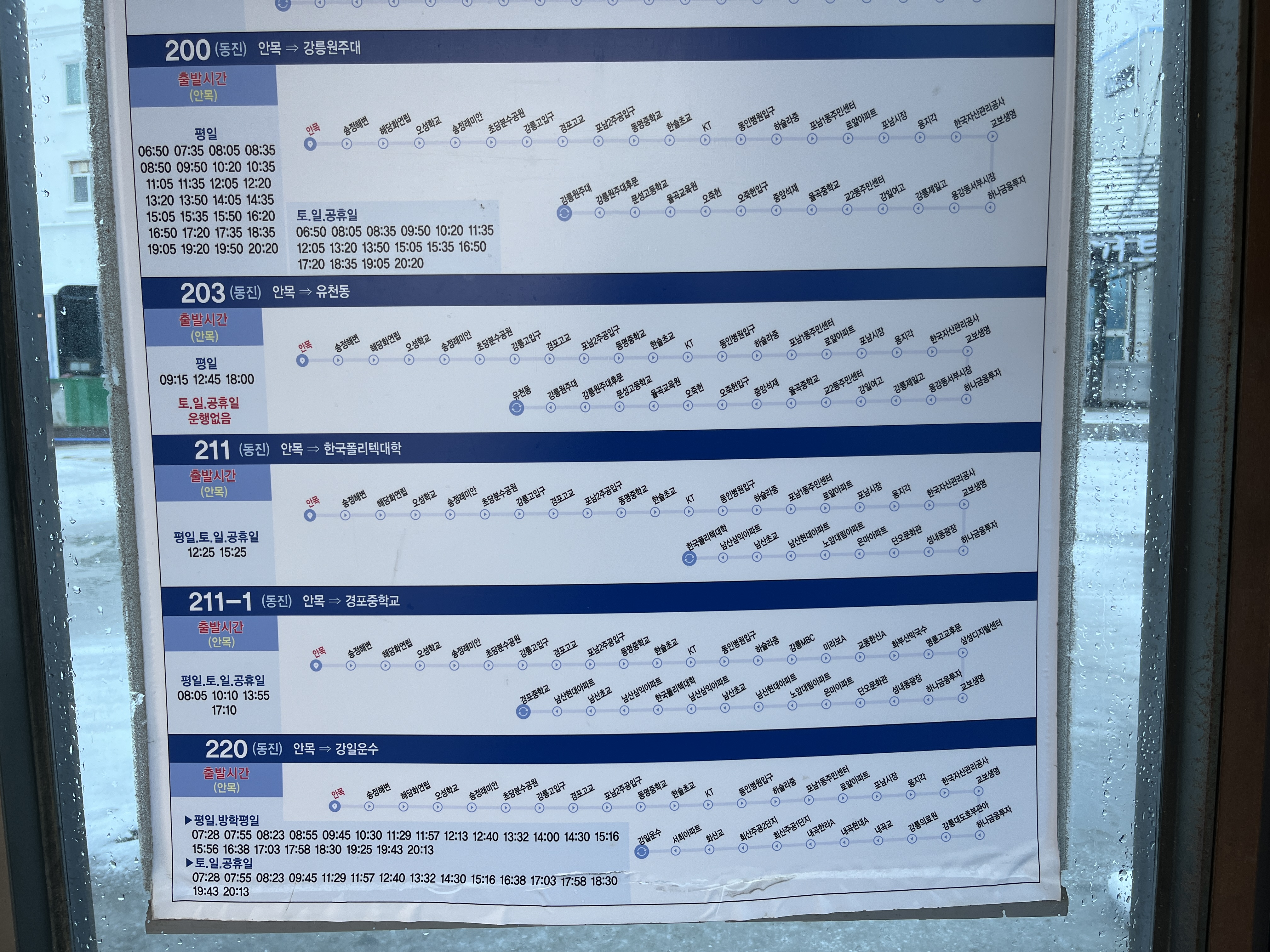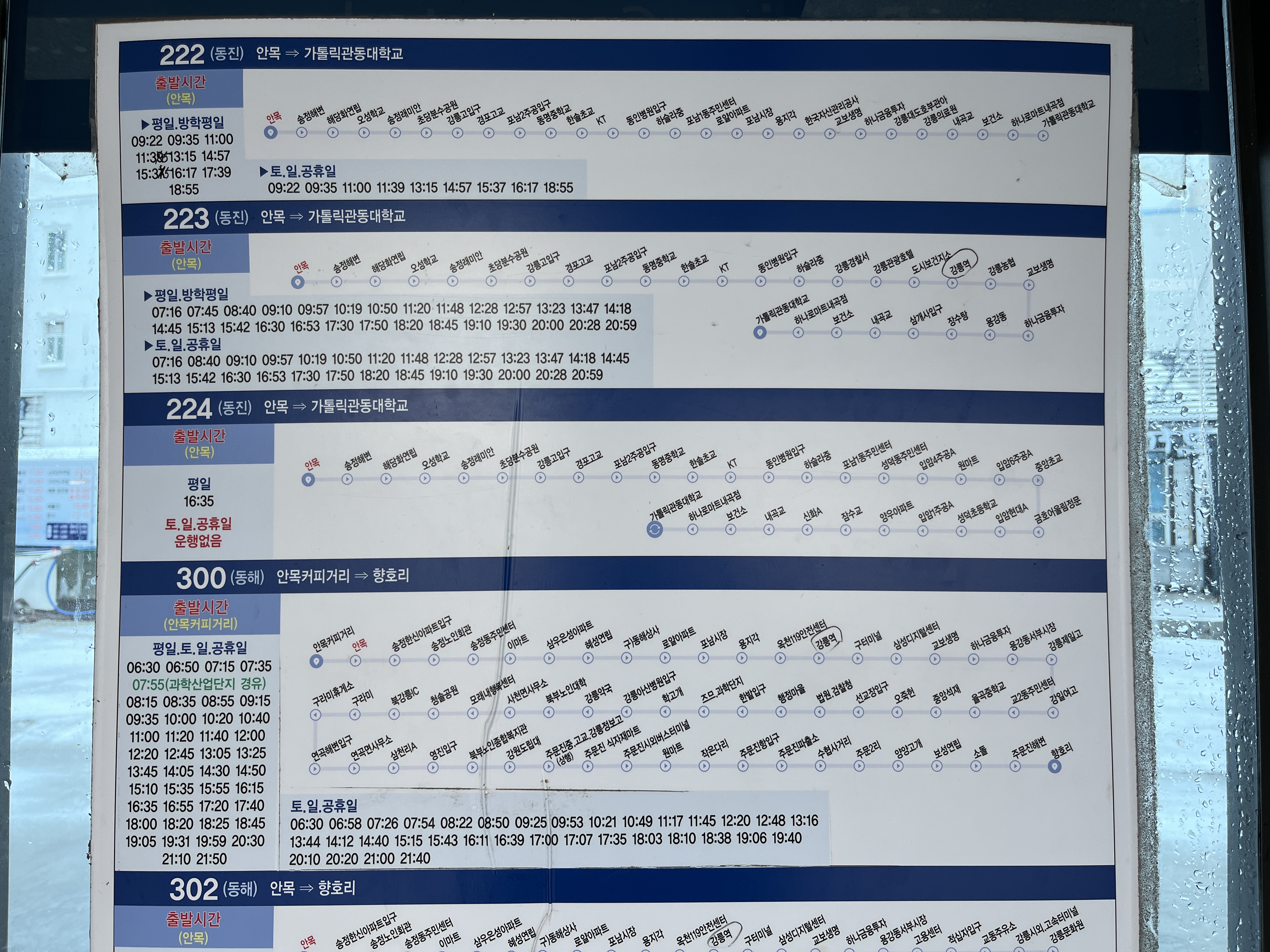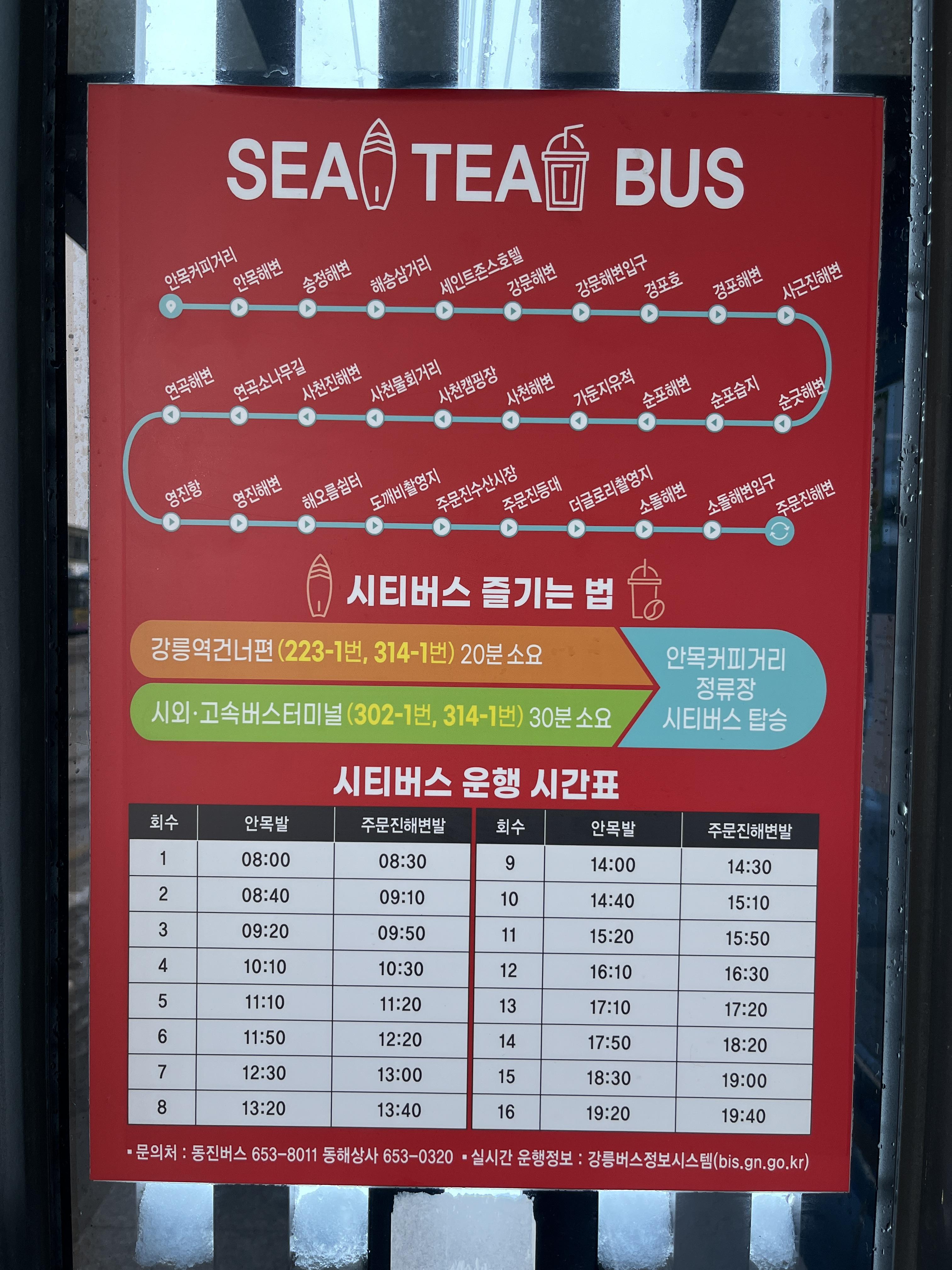 [시내버스 시간표] 안목해변 커피거리 카페거리 ▶ 강릉역, 강릉 시내, 주문진 버스 정류장 시간표, 버스 도착 시간
