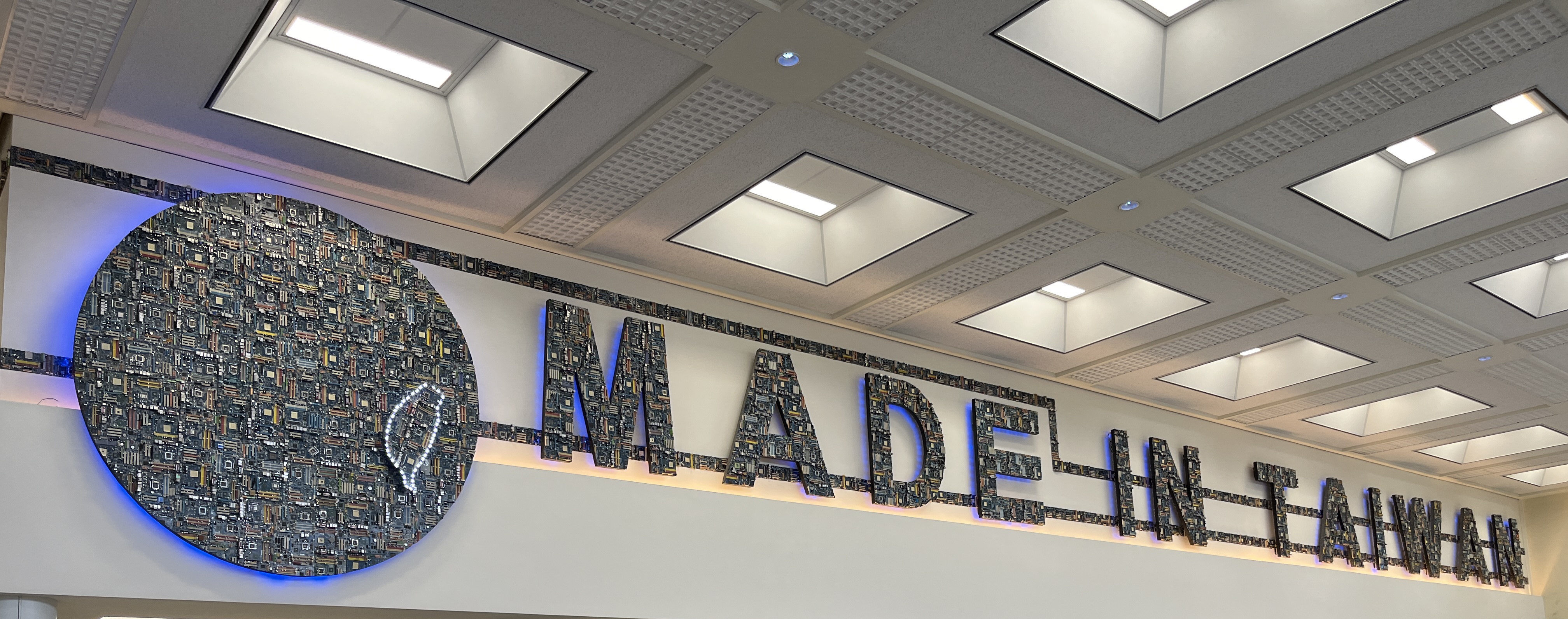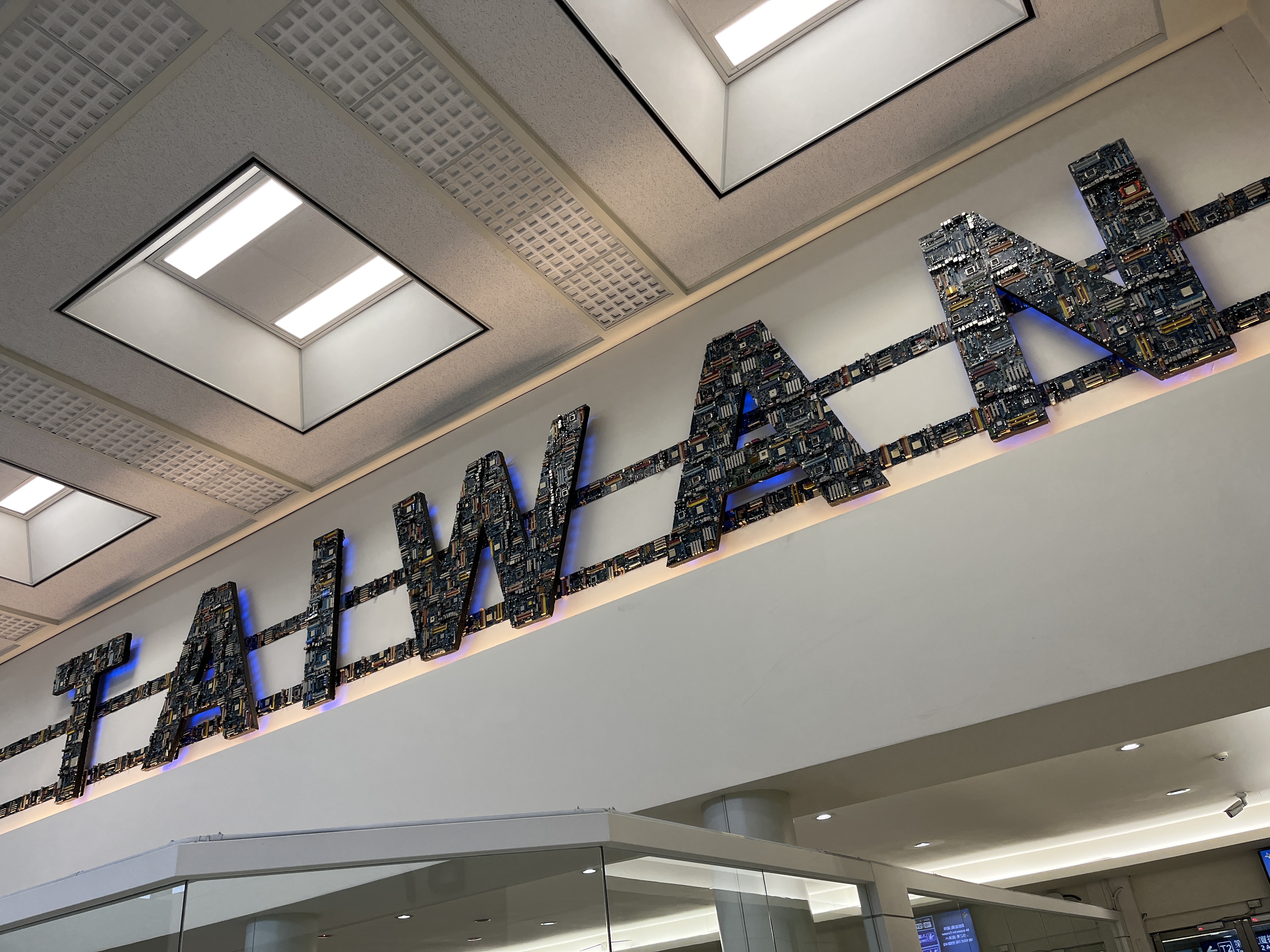비행기 탑승구 대기 공간에 있던 반도체 상징물. 대만의 '호국신산 護國神山 TSMC'이 떠올랐다.