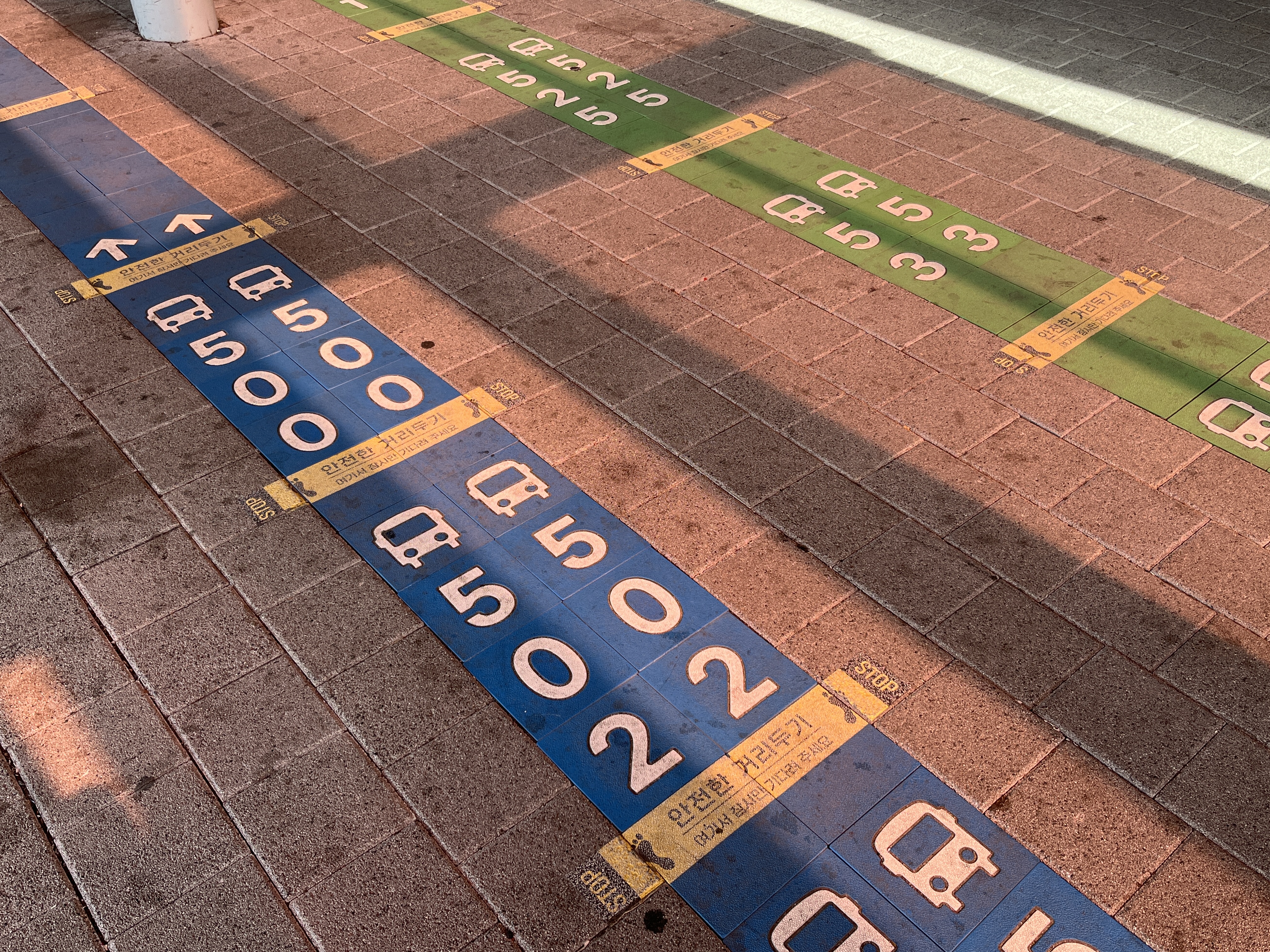 오송역 버스 정류장에는 노선별로 대기줄이 바닥에 그려져 있어 좋았다.