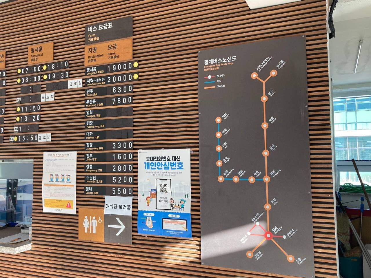횡계 버스터미널 시간표 및 버스 요금 (2020년 7월 기준, 코로나 이후)
