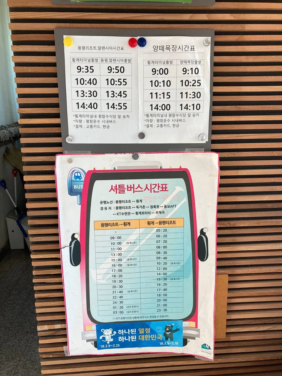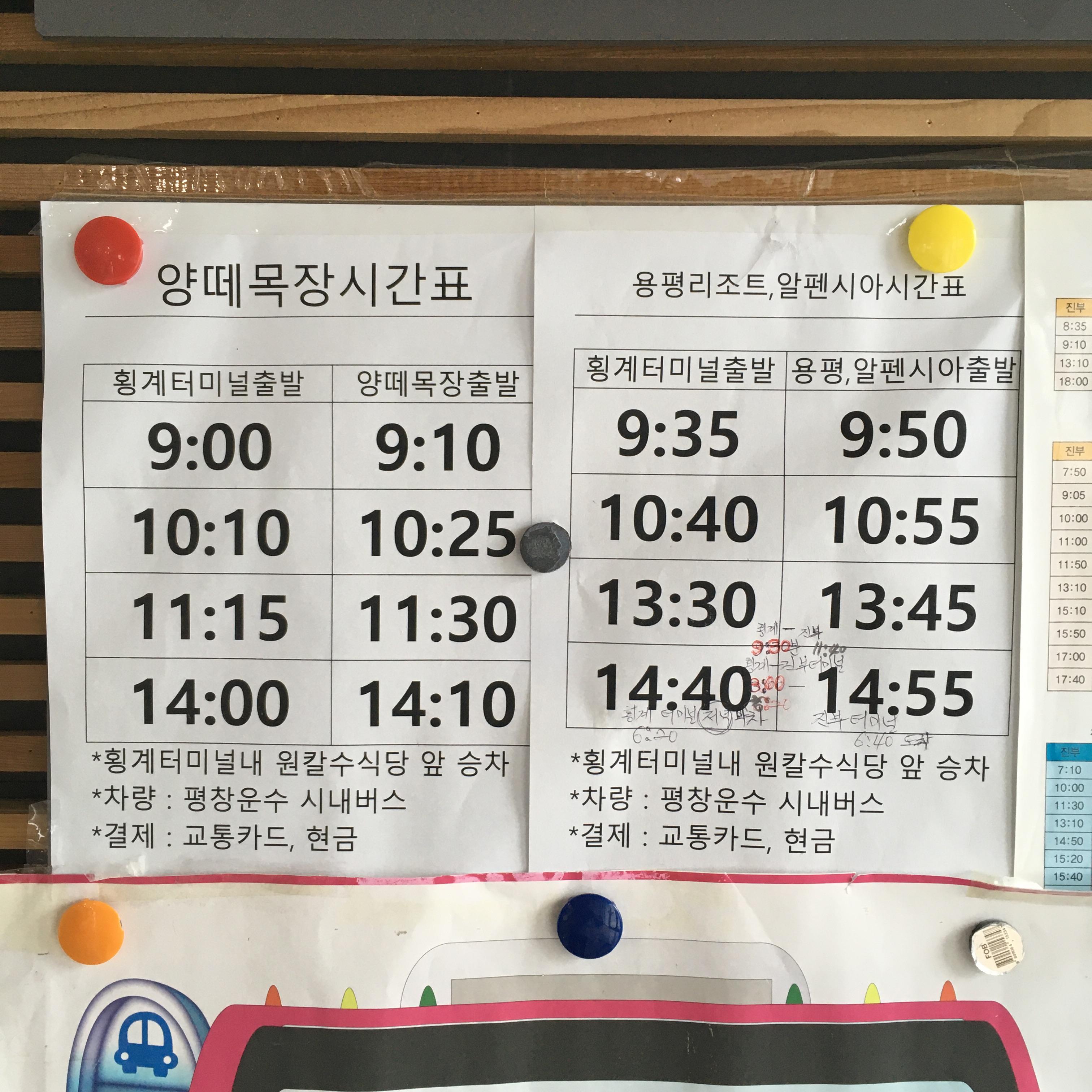 정확한 시간은 횡계 버스터미널에 한 번 더 확인하시는 것을 추천해드립니다.