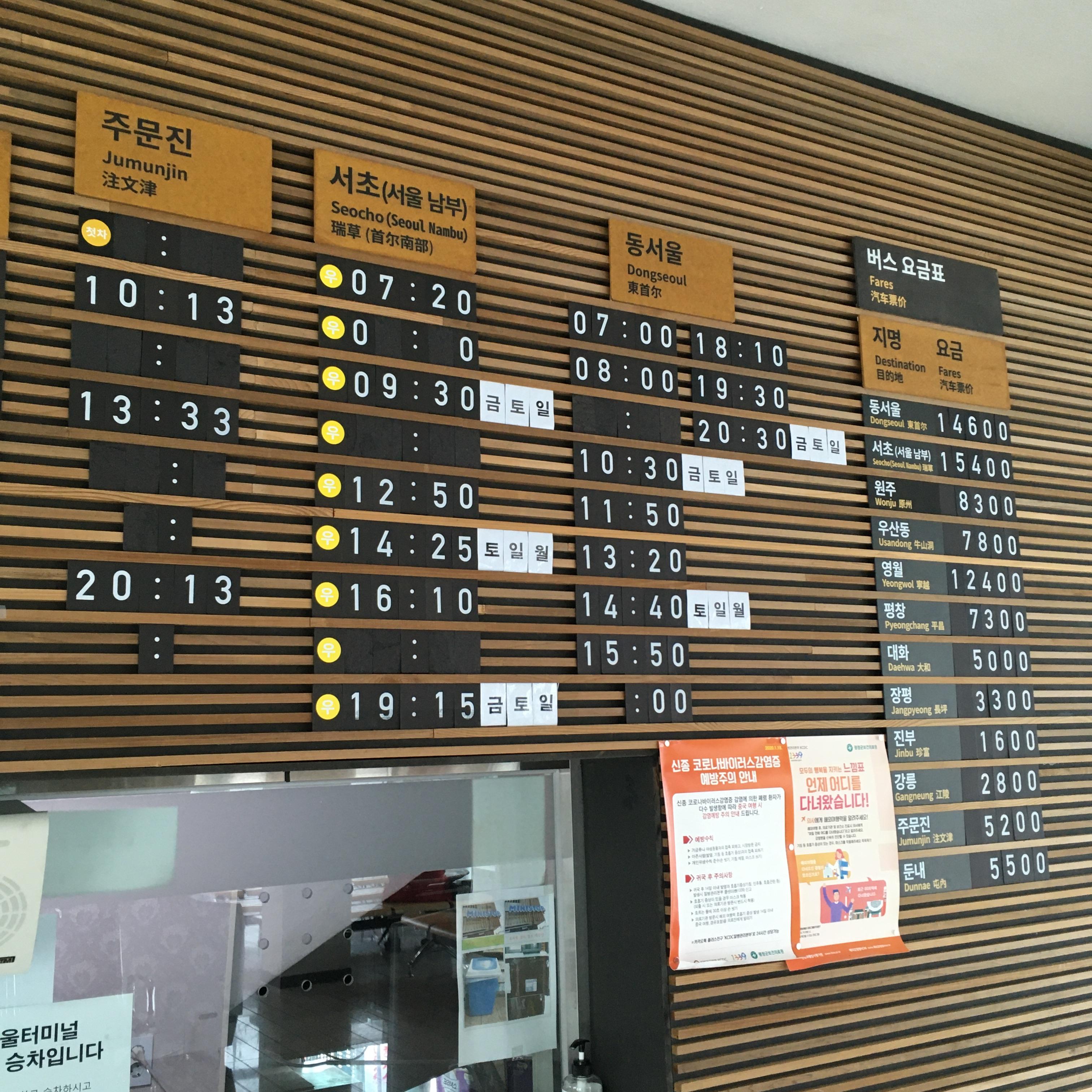 07:10(평창 Pyeongchang), 19:05(영월 Yeongwol)