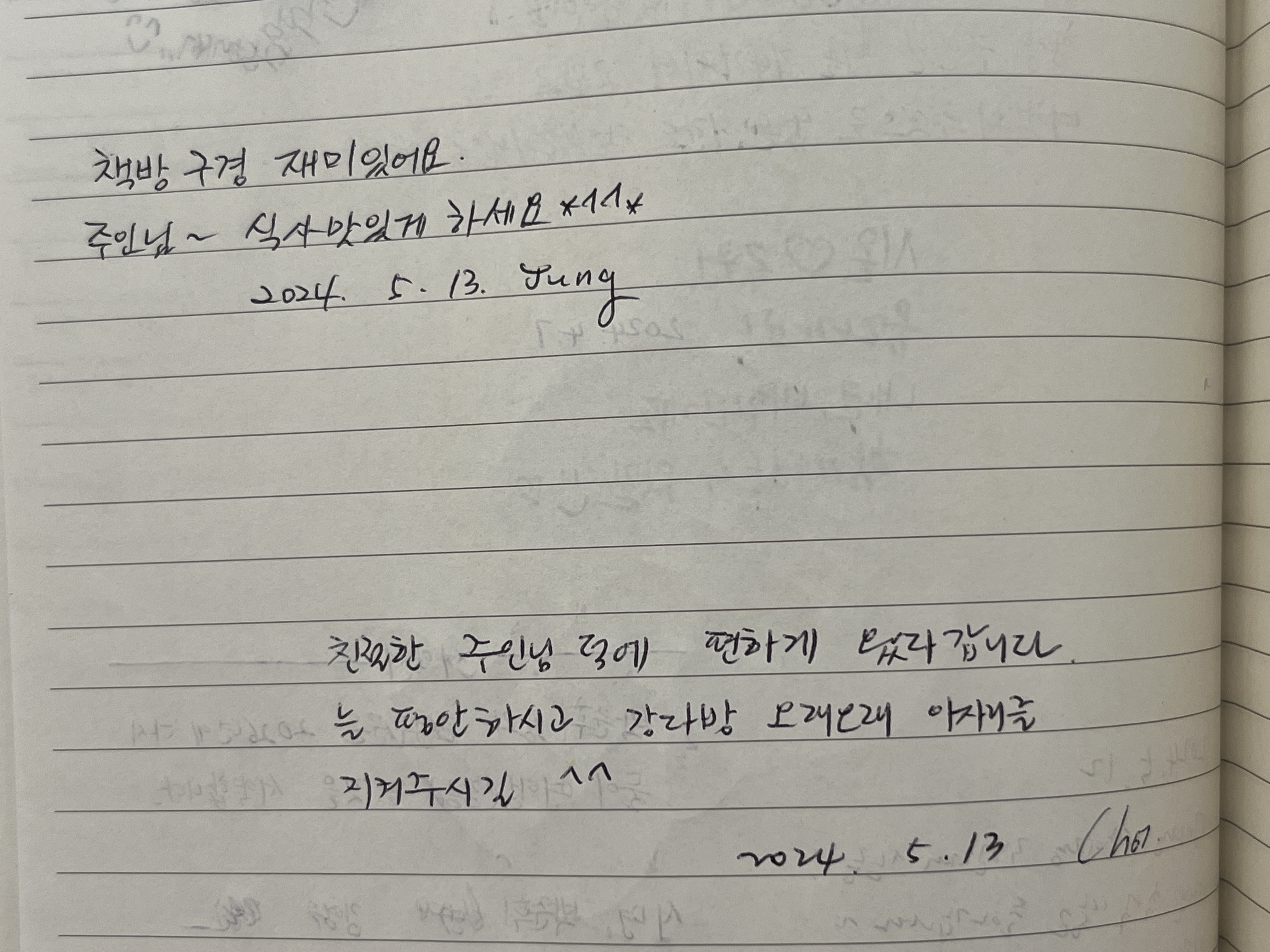 | 2024년 7월 강다방 이야기공장 방명록 (0) | 2024.08.27 |