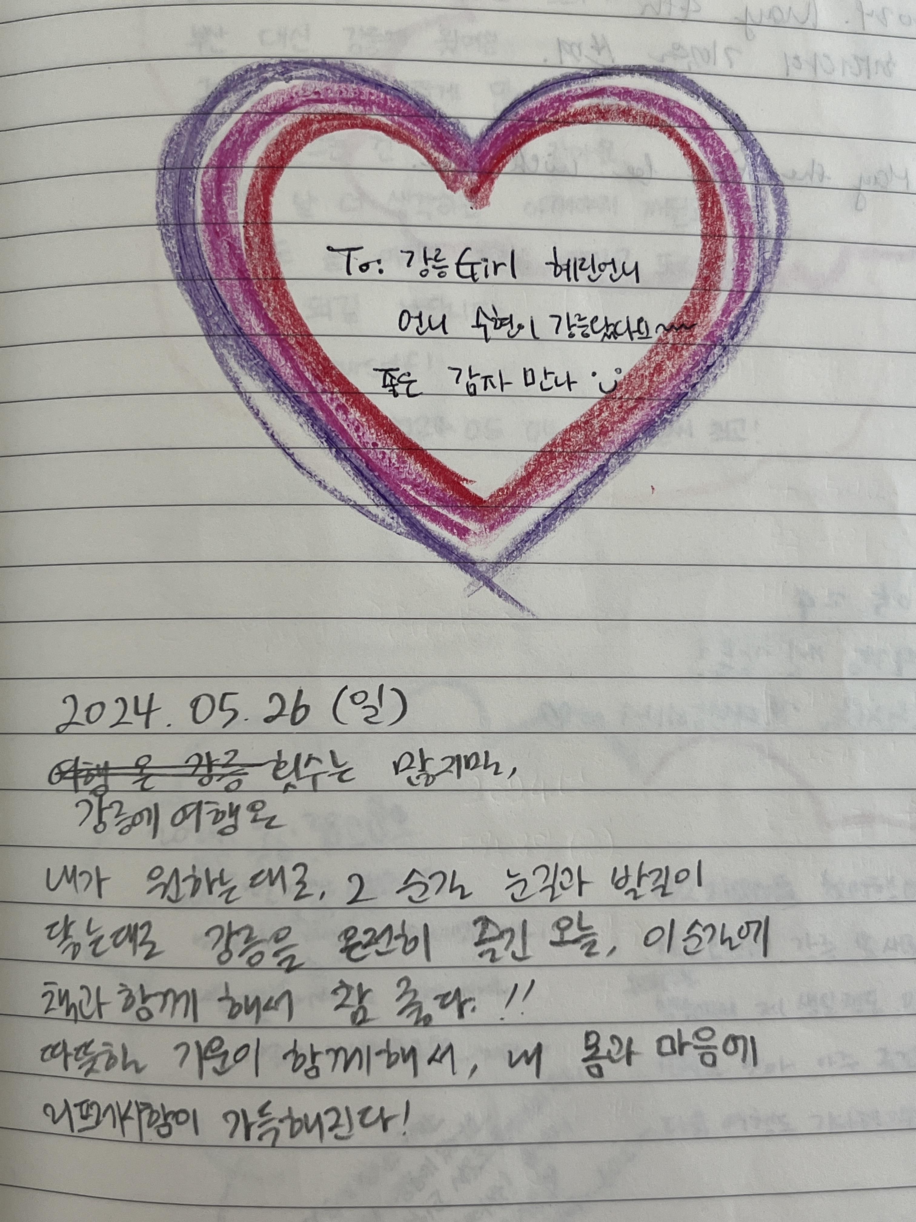 노력해보자!! 저랑 강릉 와줘서 넘 행복해요 :)