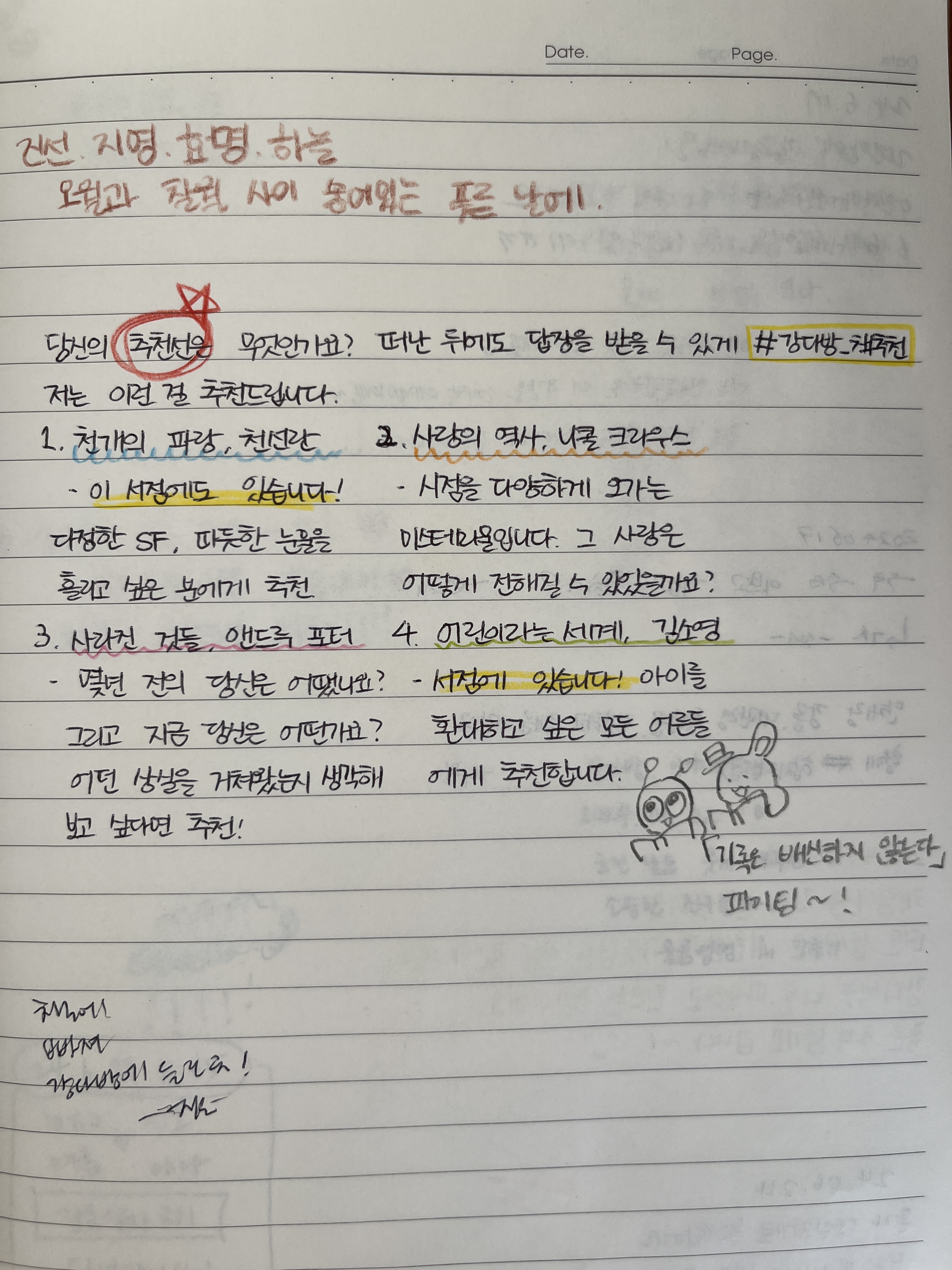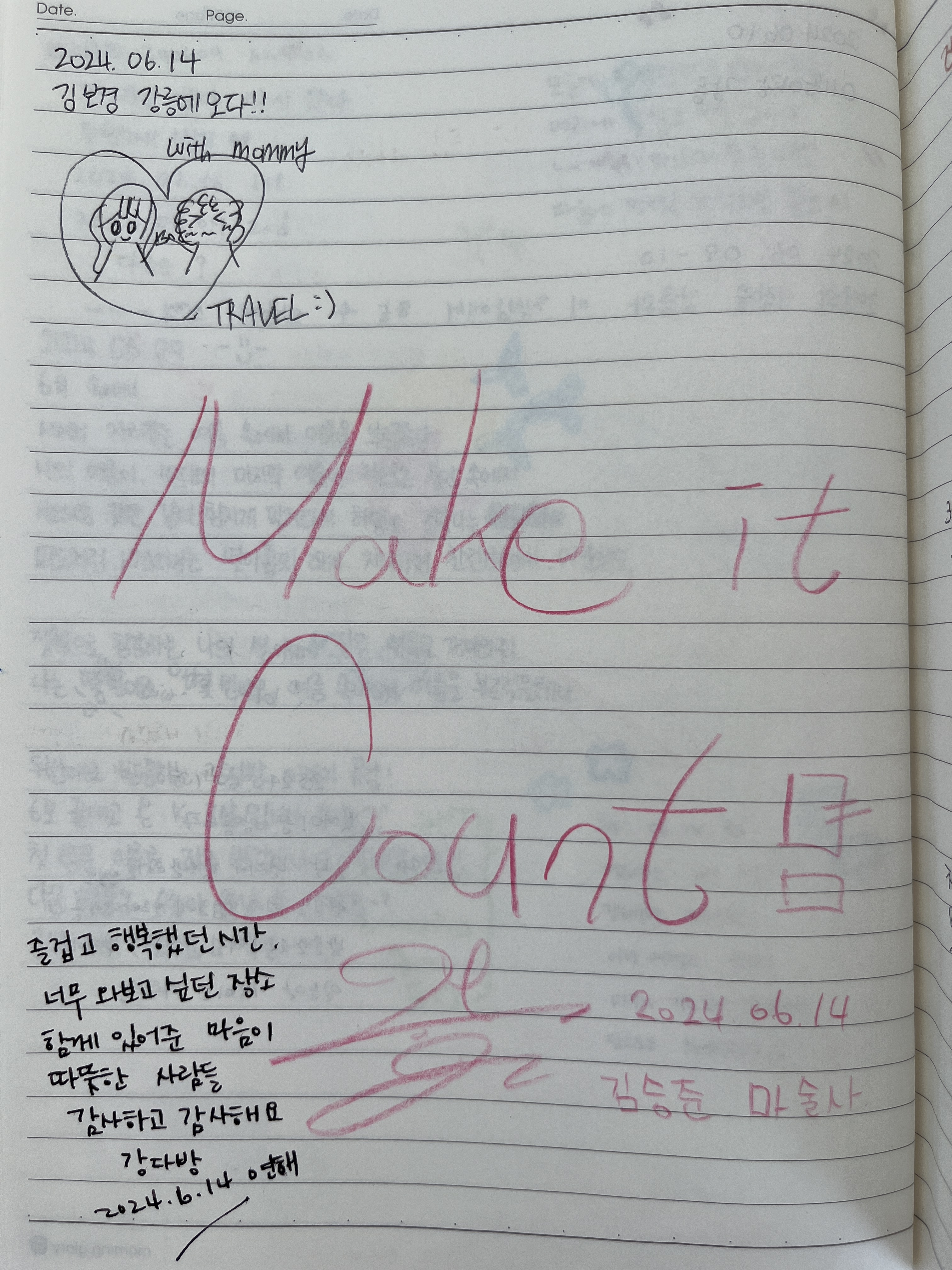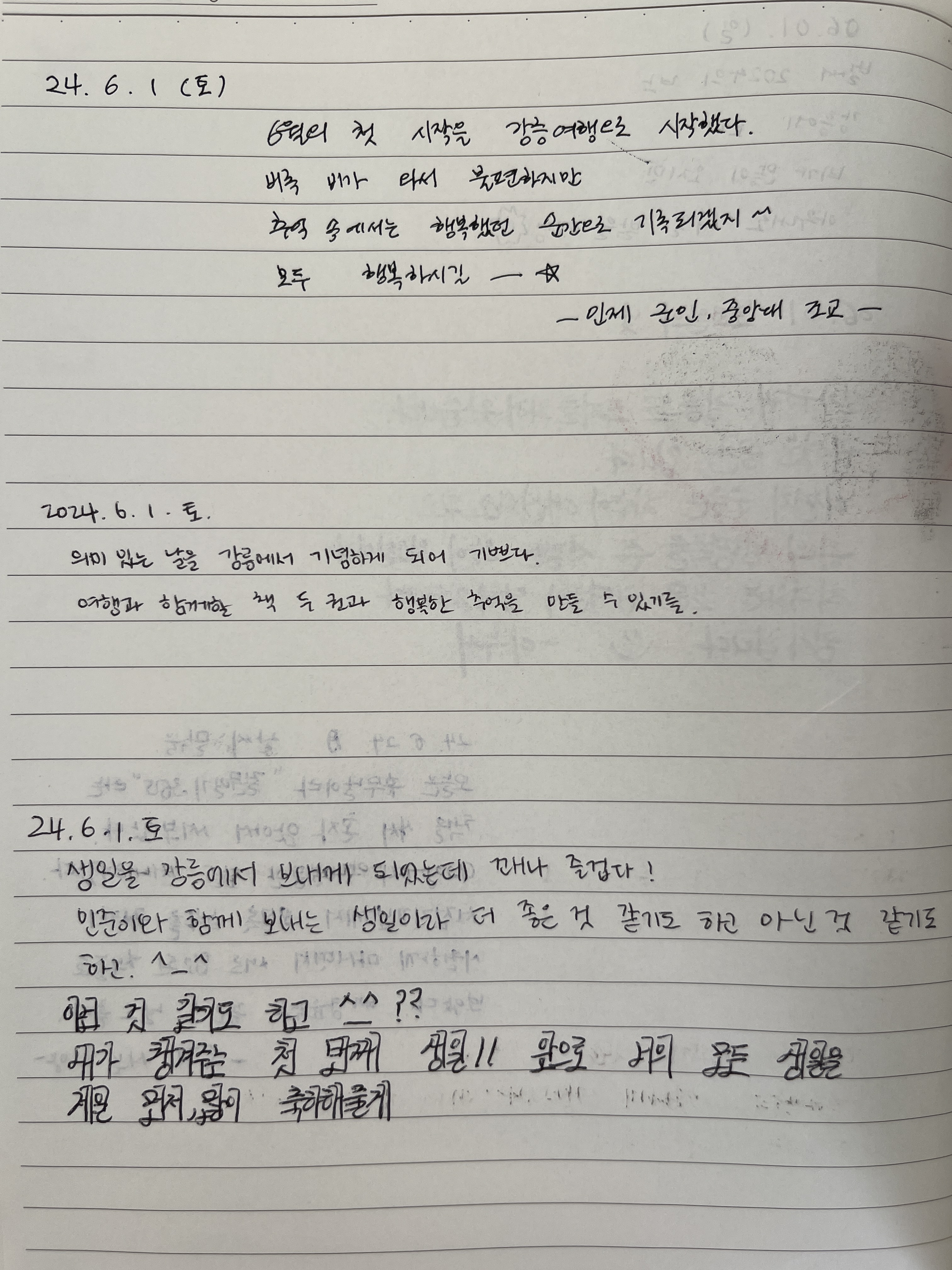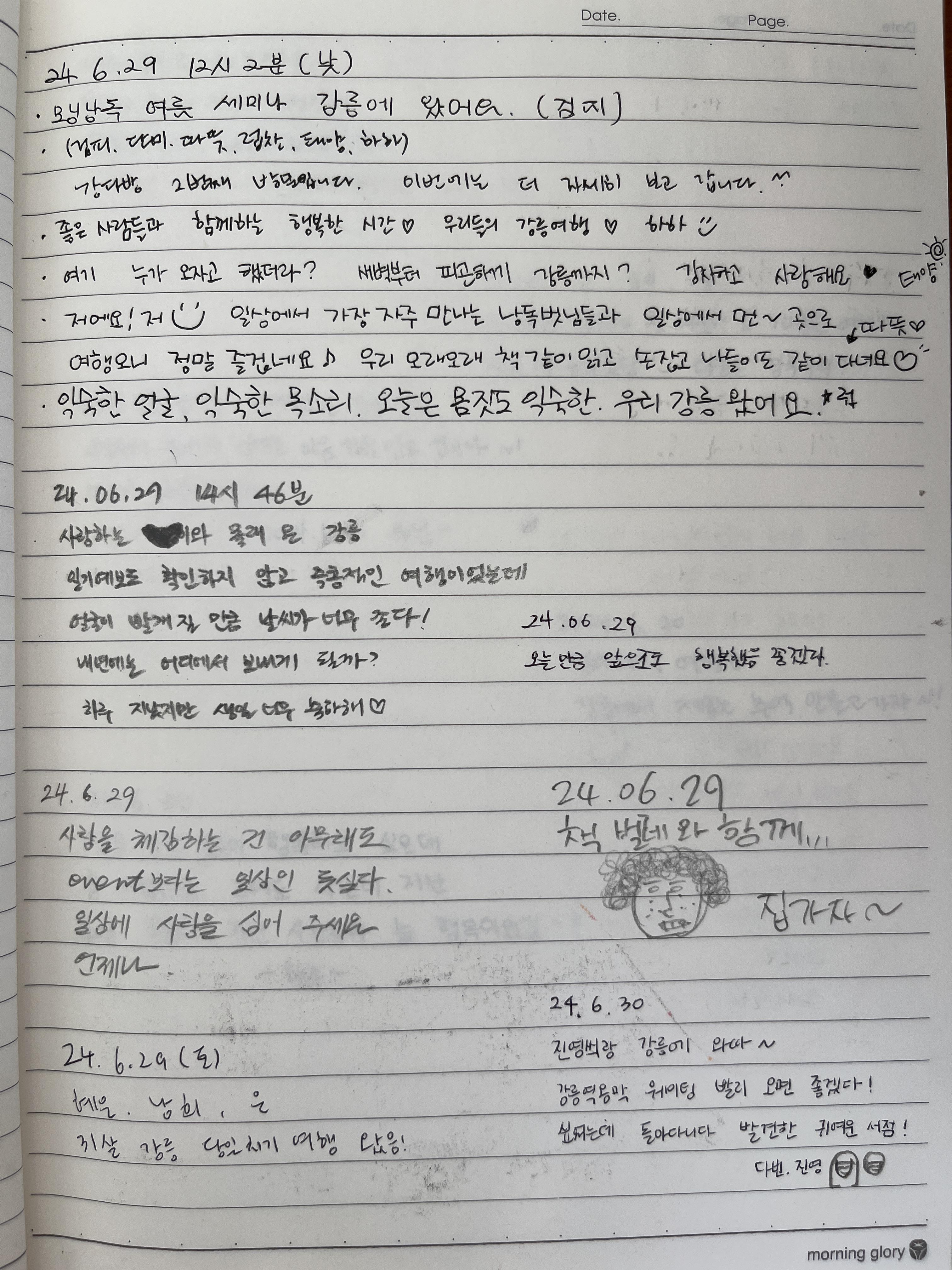 노트사고 한 문장씩 뽑고 가요. 강릉 첨인데 기대중이에요~^^