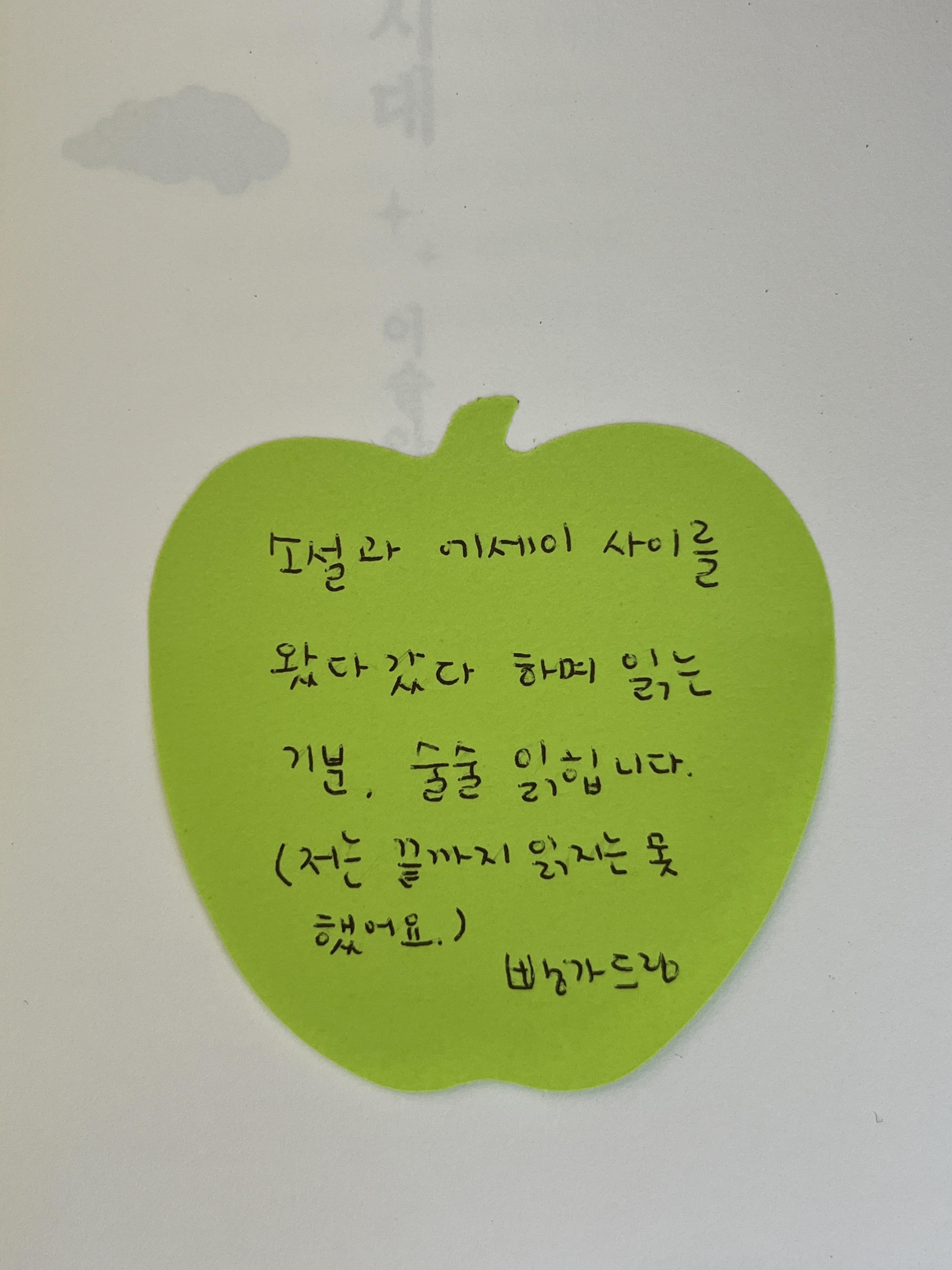소설과 에세이 사이를 왔다갔다 하며 읽는 기분.