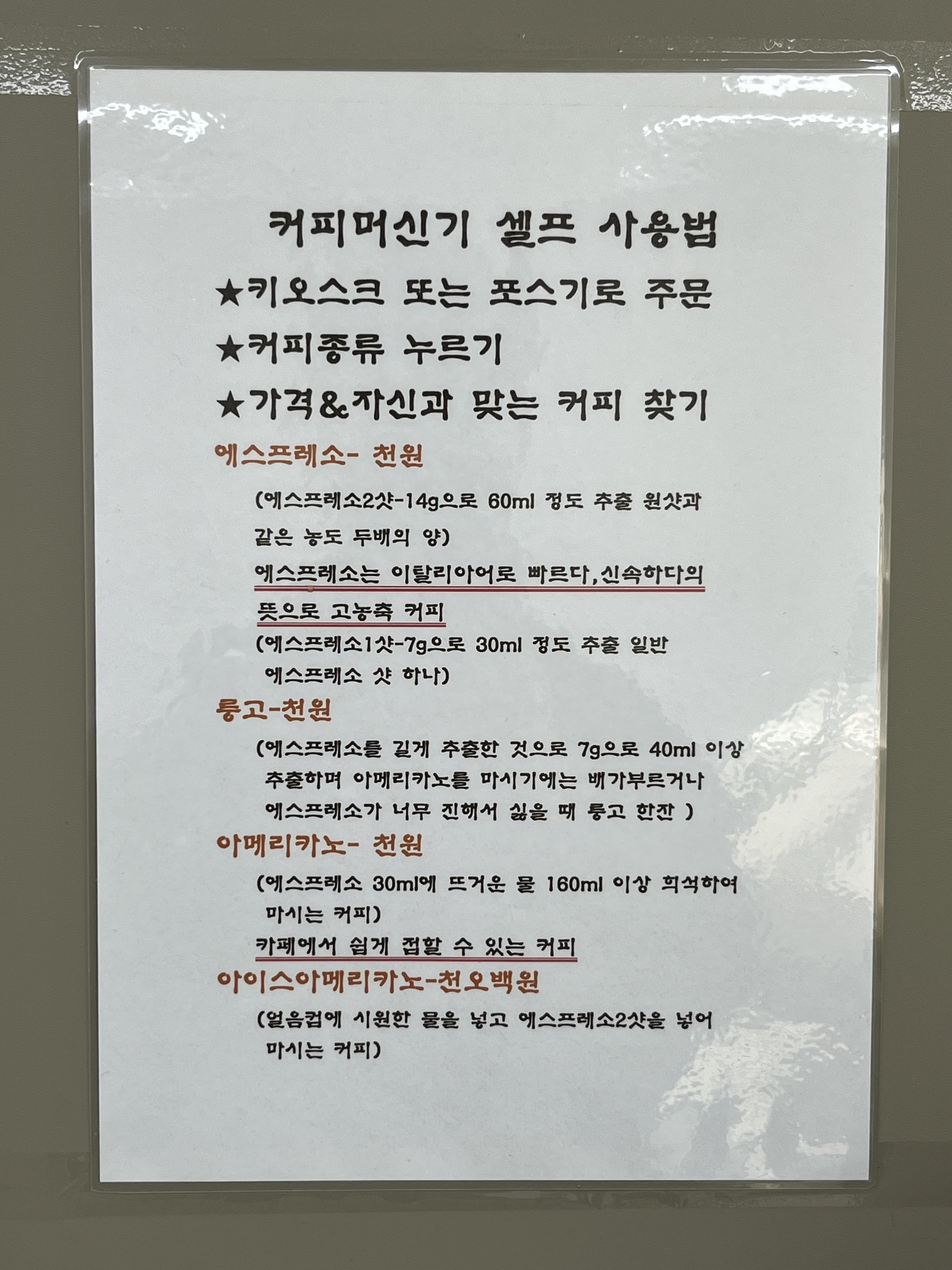 강릉시립중앙도서관 지하에 위치한 식당. 사람에 따라 양이 많거나 푸짐하게 느껴지지 않을 수있지만, 가격이 워낙 저렴해 가볍게 한 끼 먹기 좋다. 음식 외 라면과 음료수 커피 등도 판매한다. 어르신들의 일자리를 제공하는 사업으로 운영되어 의미도 있다!