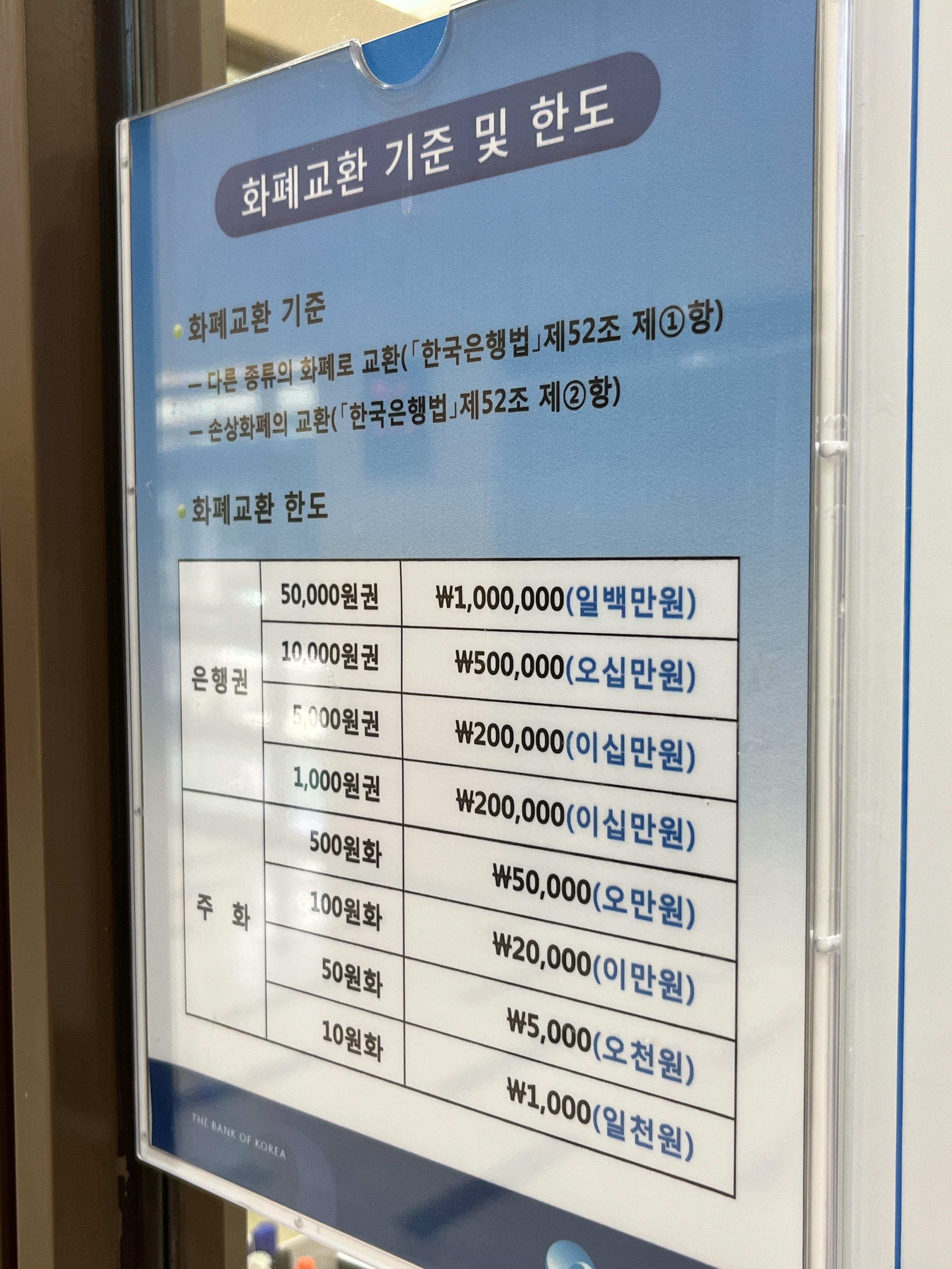 (명절 신권 교환이 아닌 평상시 통용되는 화폐 교환 기준)
