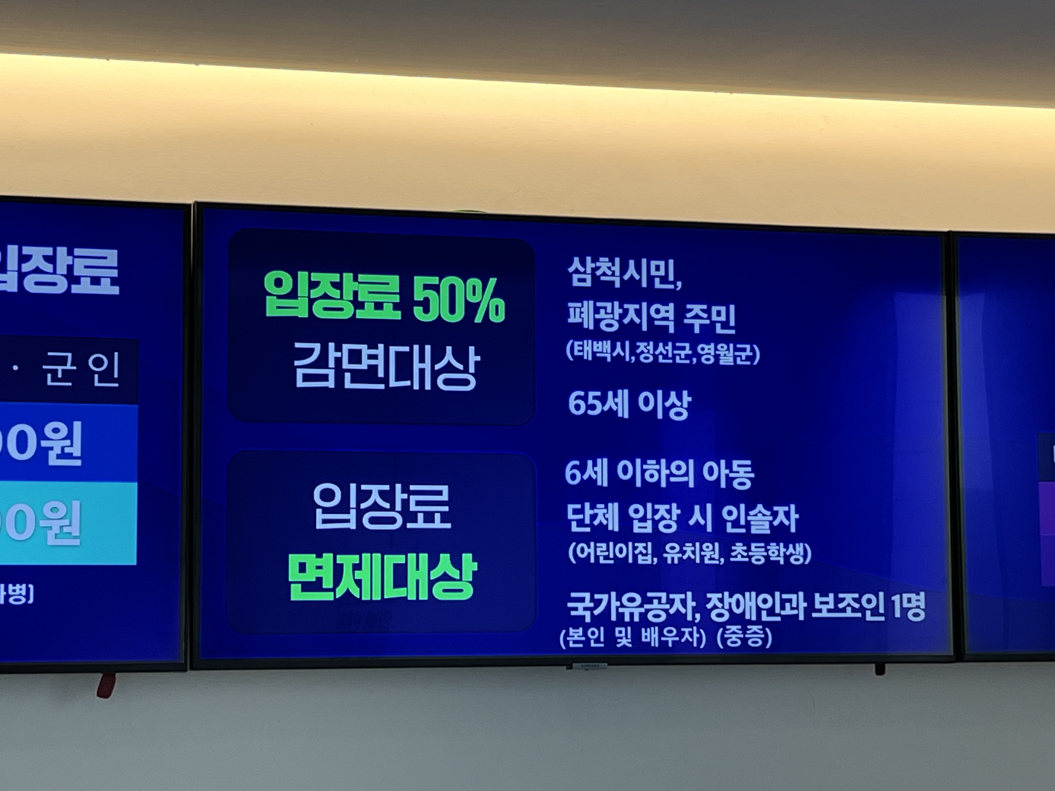 50% 감면 대상 : 삼척시민, 폐광지역 주민(태백, 정선, 영월)