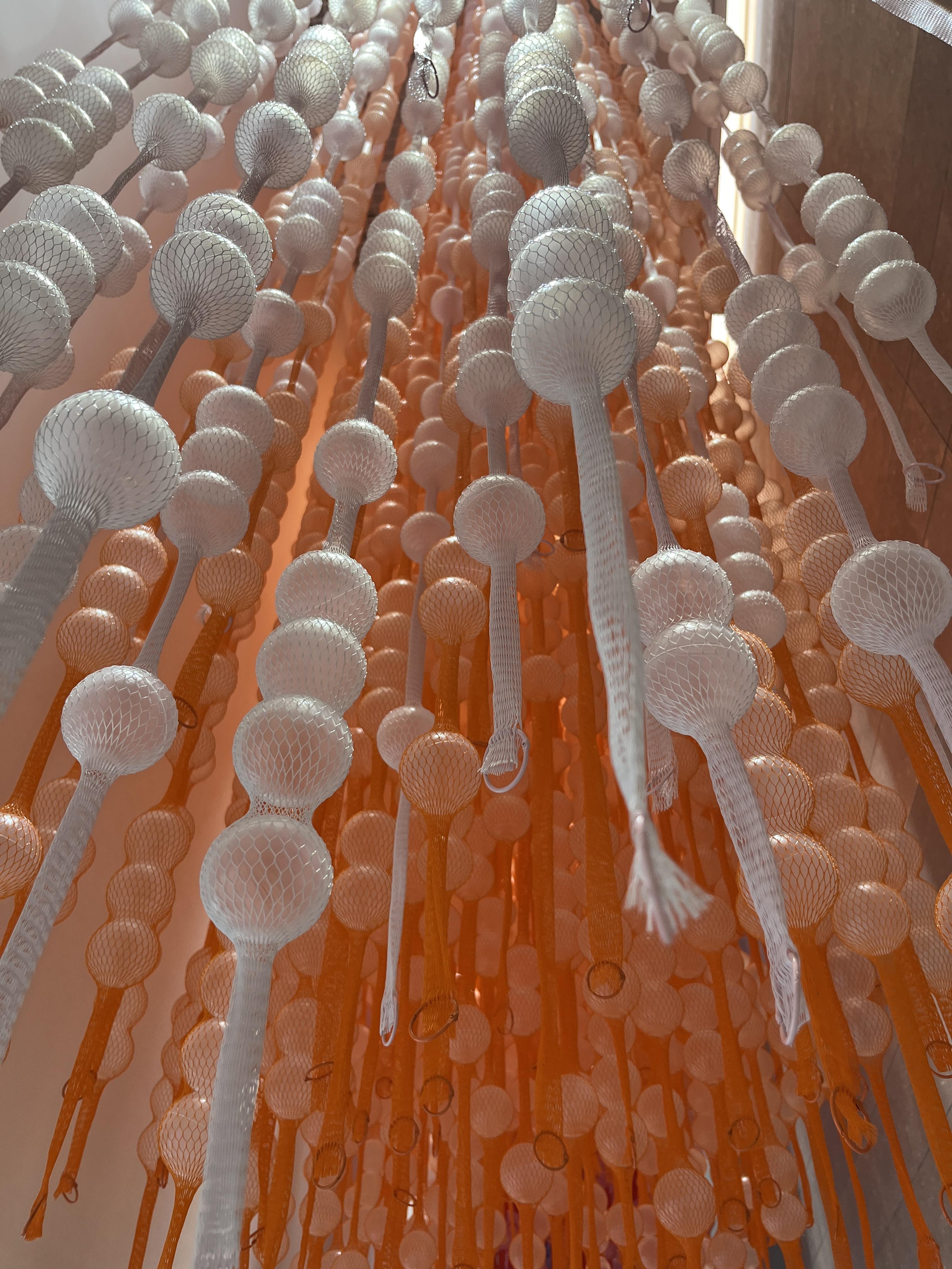 2024, PE망, 플라스틱 공, 스틸고리 100x1500x450cm