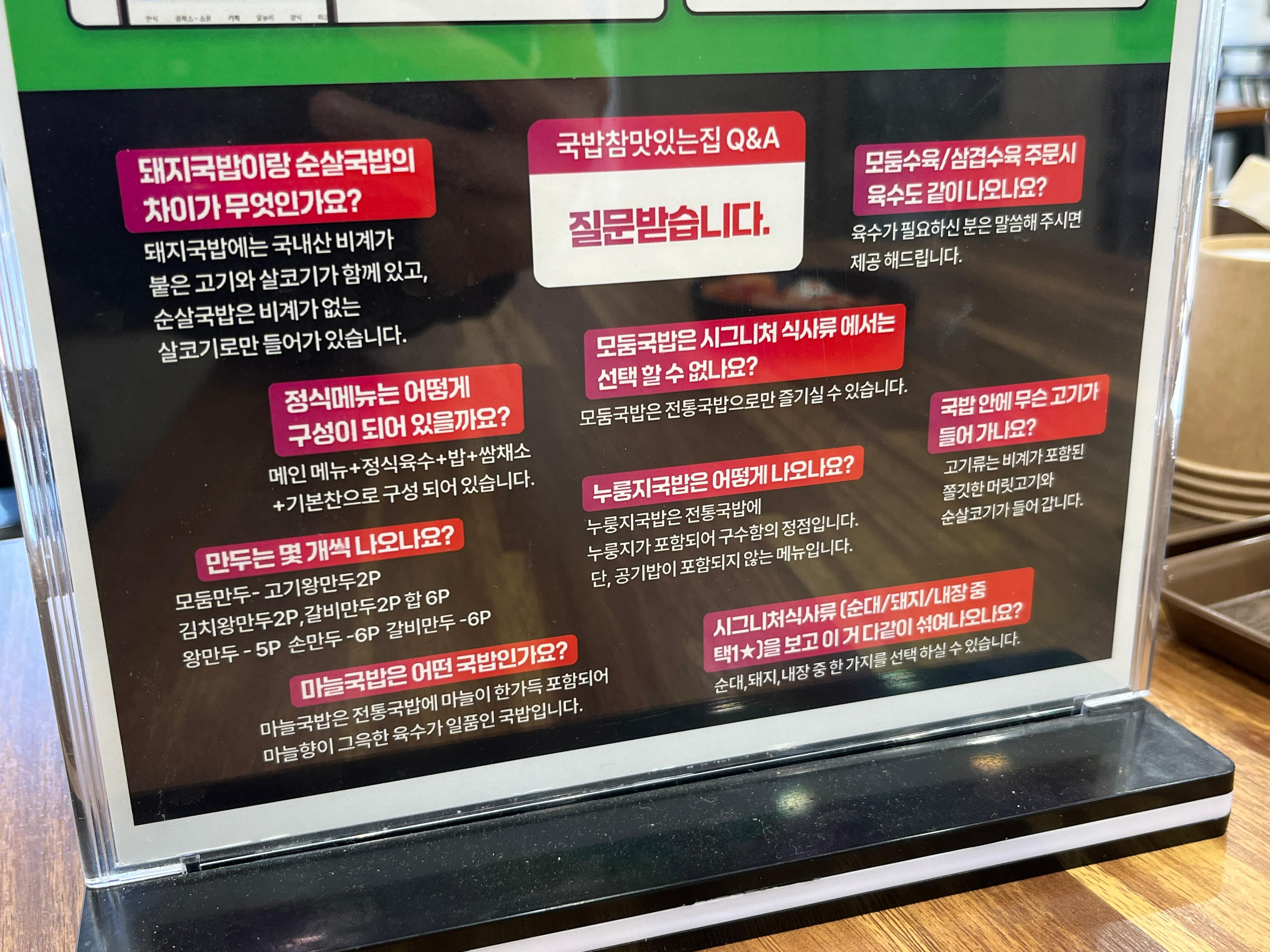 포남오거리와 강릉경찰서 사이에 있는 국밥집. 국밥에 당면순대가 아닌 고기와 찹쌀을 넣은 순대가 들어있다. 정확한 기간은 알 수 없으나 점심시간에는 기존 9천원 하는 국밥을 7천원에 판매한다. 점심 특선 할인은 오전 11시부터 15시까지다.
