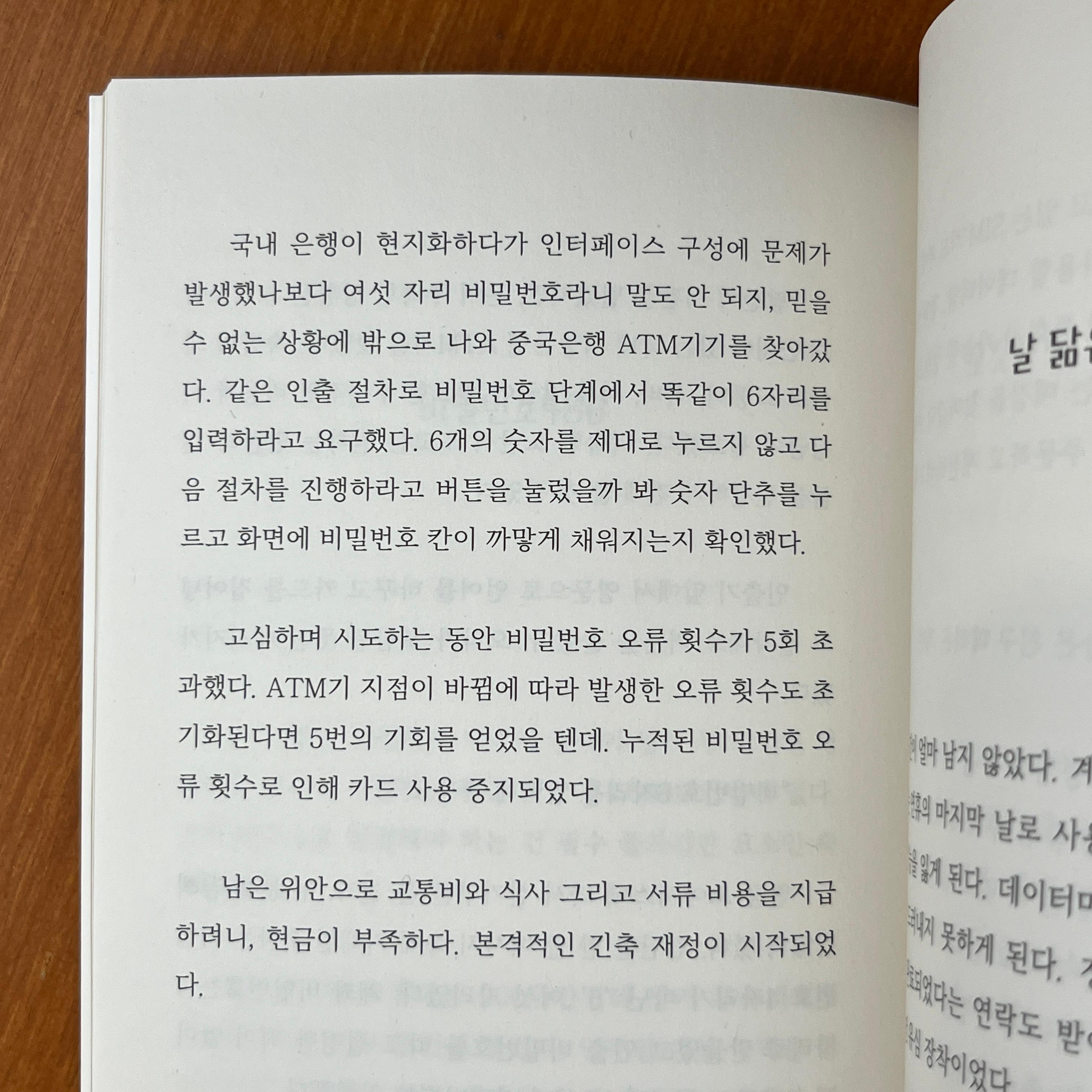 남은 위안으로 교통비와 식사 그리고 서류 비용을 지급하려니, 현금이 부족하다. 본격적인 긴축 재정이 시작되었다.