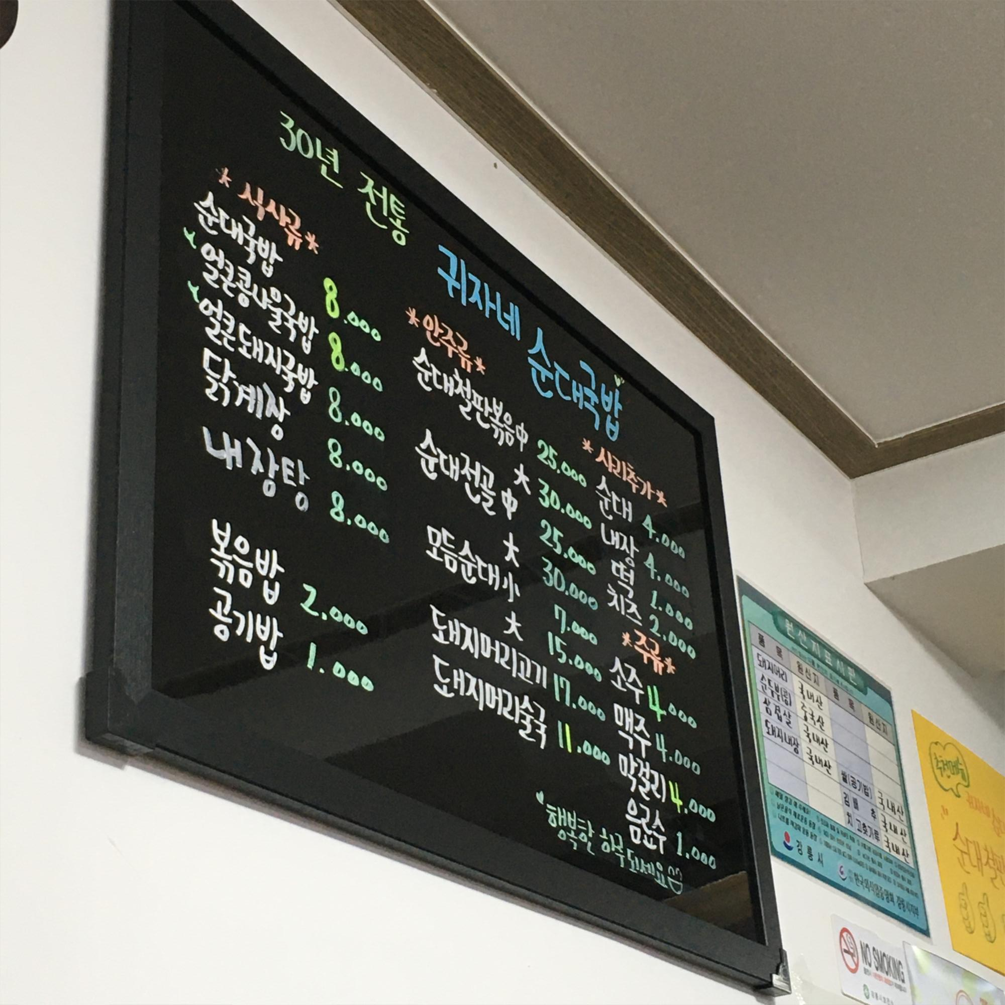 원래는 양양에서 순대국밥집을 하다 주문진으로 확장(?)한 귀자네순대국밥. 초창기에는 어머님이 주문진을 담당하시다 최근에는 아드님(?) 따님(?)이 주문진으로 오시고 어머님은 다시 양양으로 가셨다는 곳이다. 순대국밥 이외에 순대볶음 등도 먹을 수 있다.
