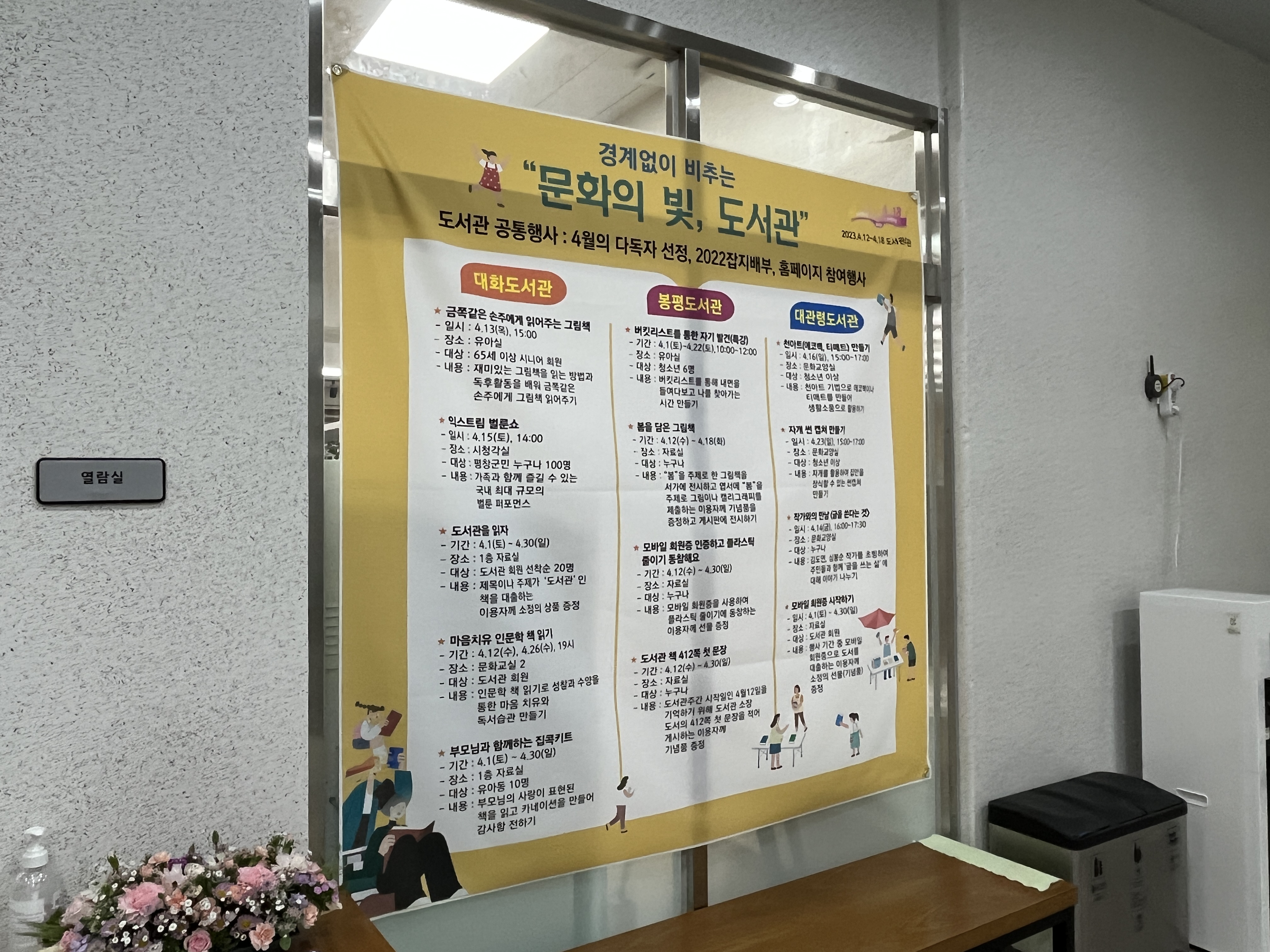 평창 대관령에 있는 군립 도서관. 대도시와 비교하여 규모가 크진 않을 수 있지만 열람실은 물론 휴게실, 문화 행사도 알차게 진행되고 있다.
