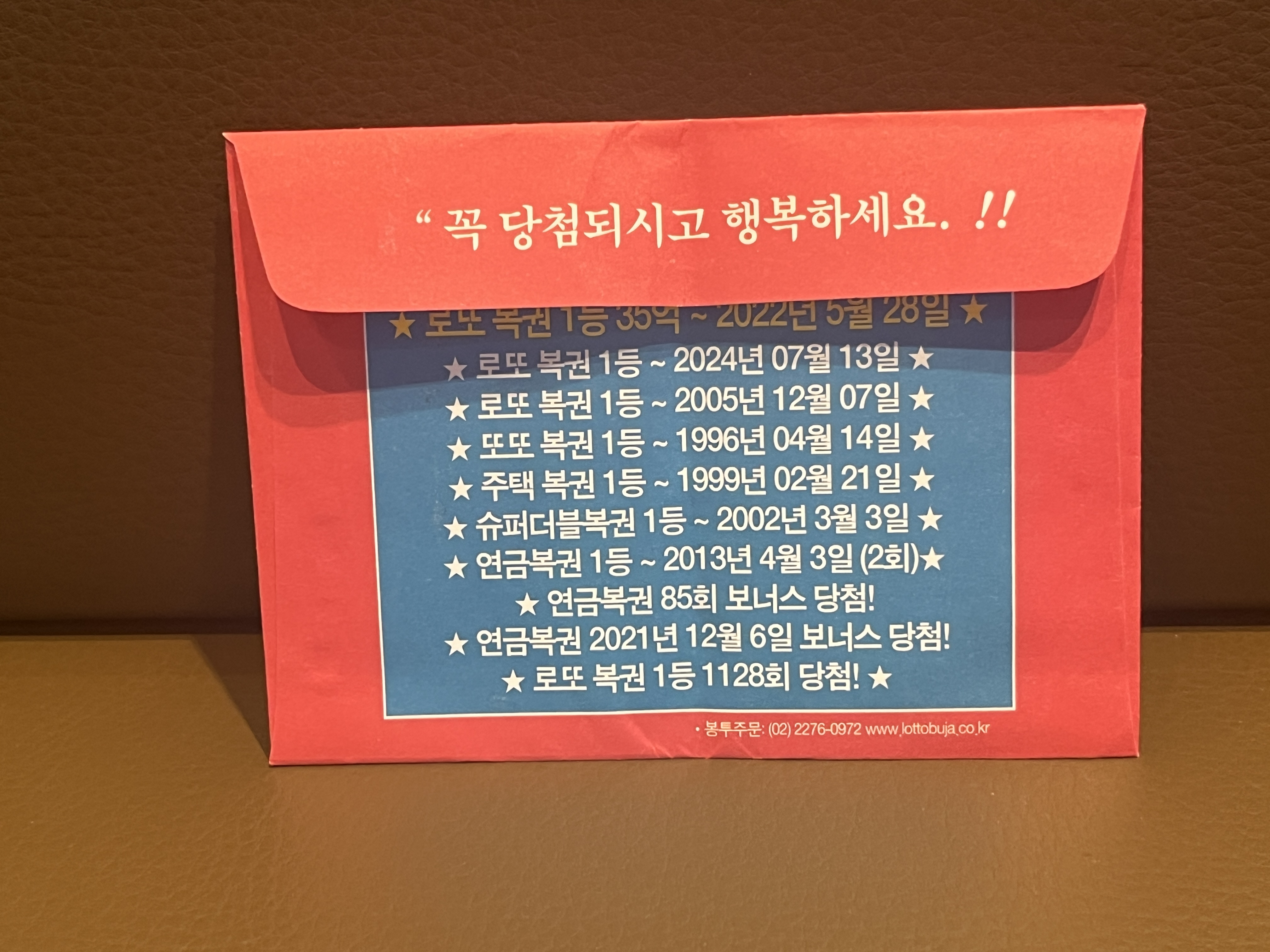 행복을 하나 선물 받았다. 복권 봉투에는 '꼭 당첨되시고 행복하세요!'라는 말이 적혀있었고 진짜 5등이 당첨되었다. 여러분들도 꼭 행복하길! 누군가에게 행복을 선물할 수 있는 사람이 되길!