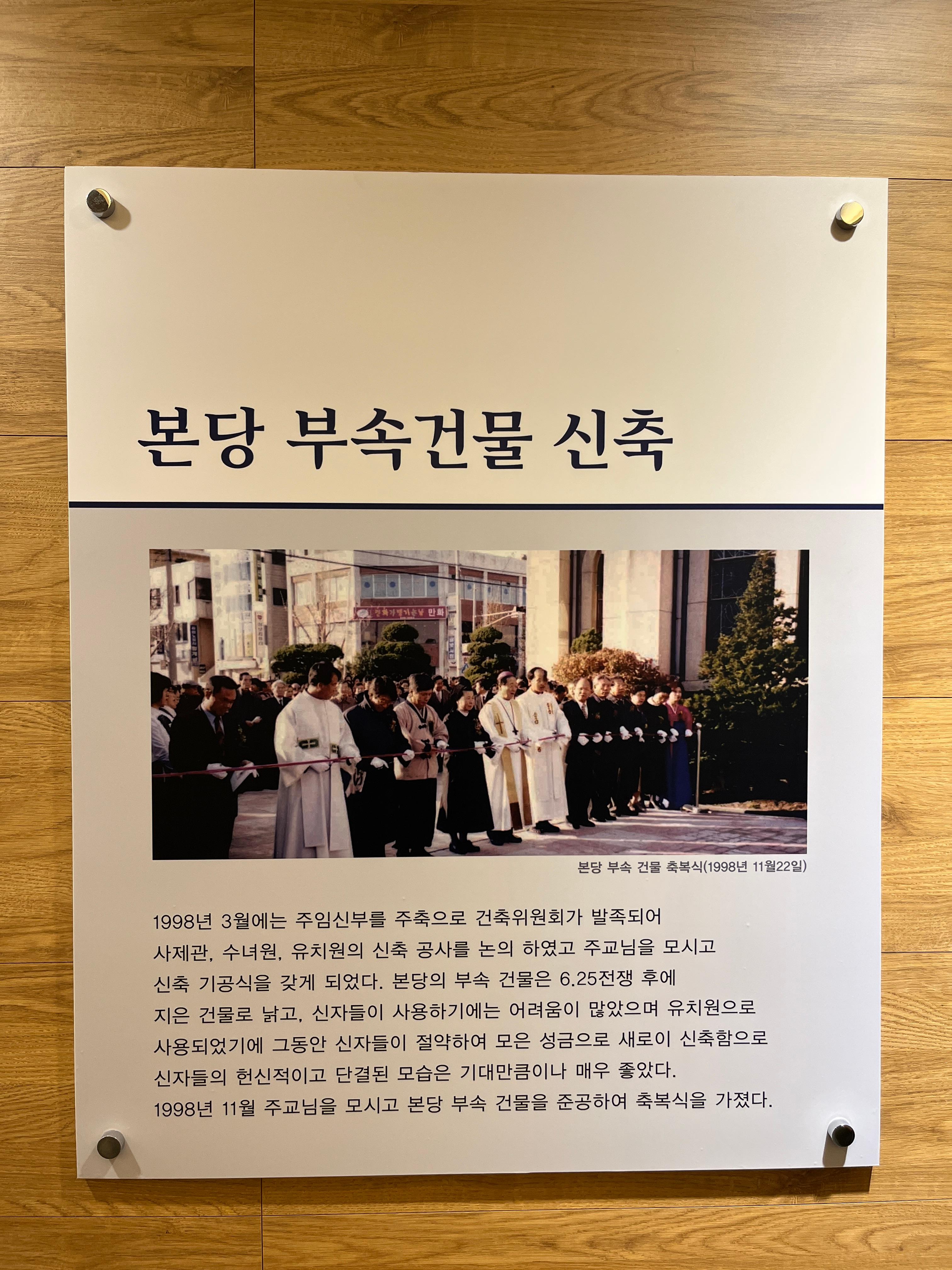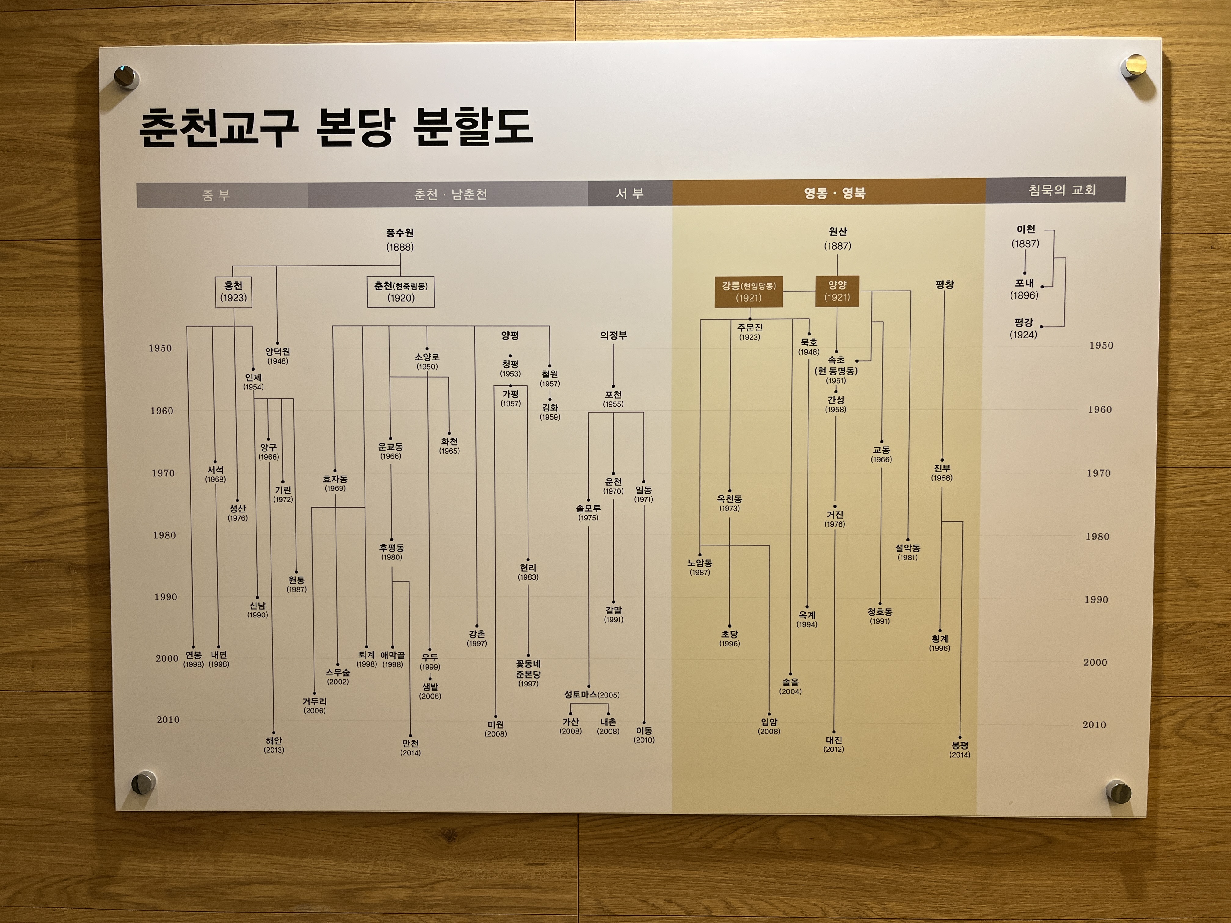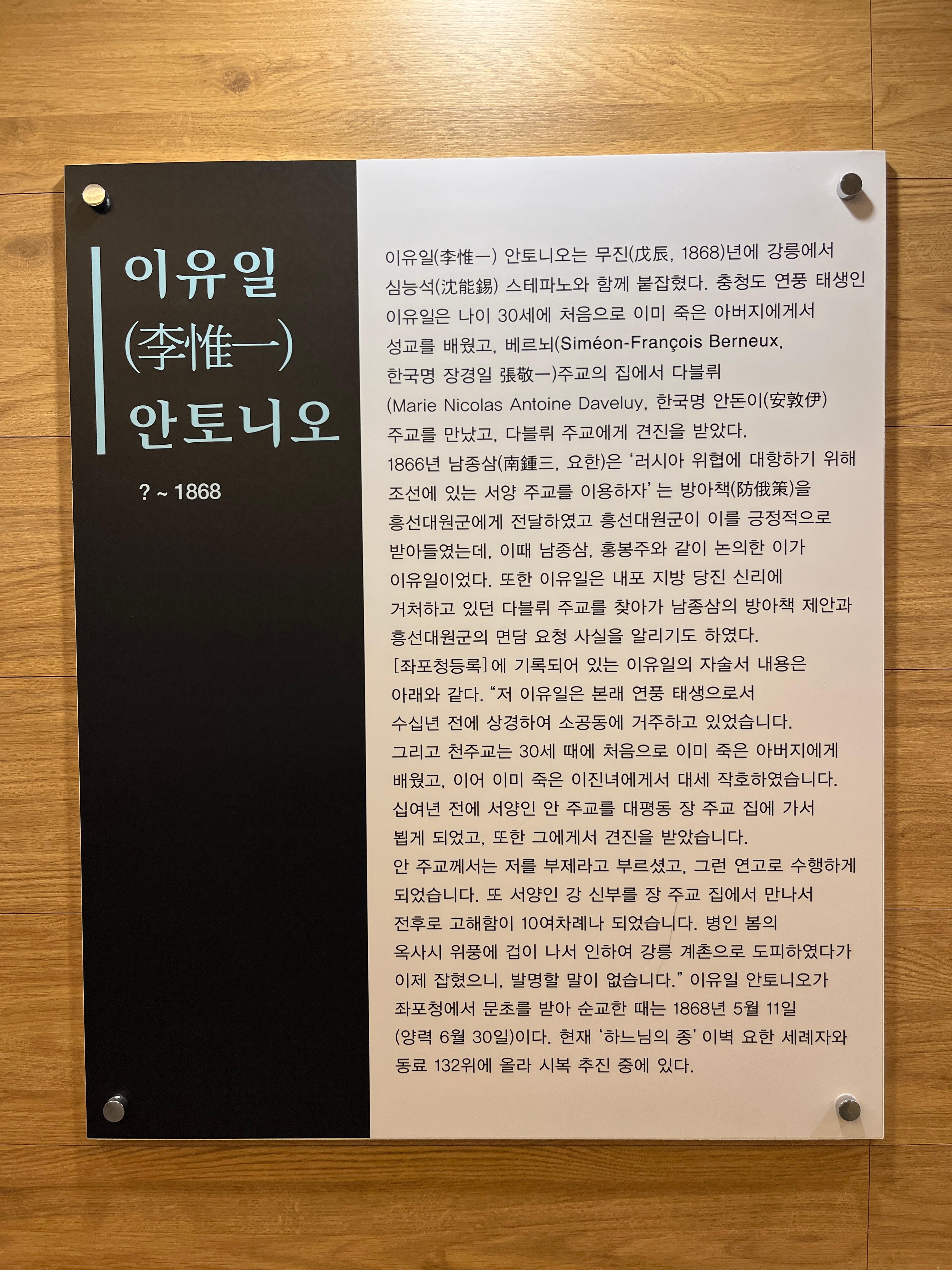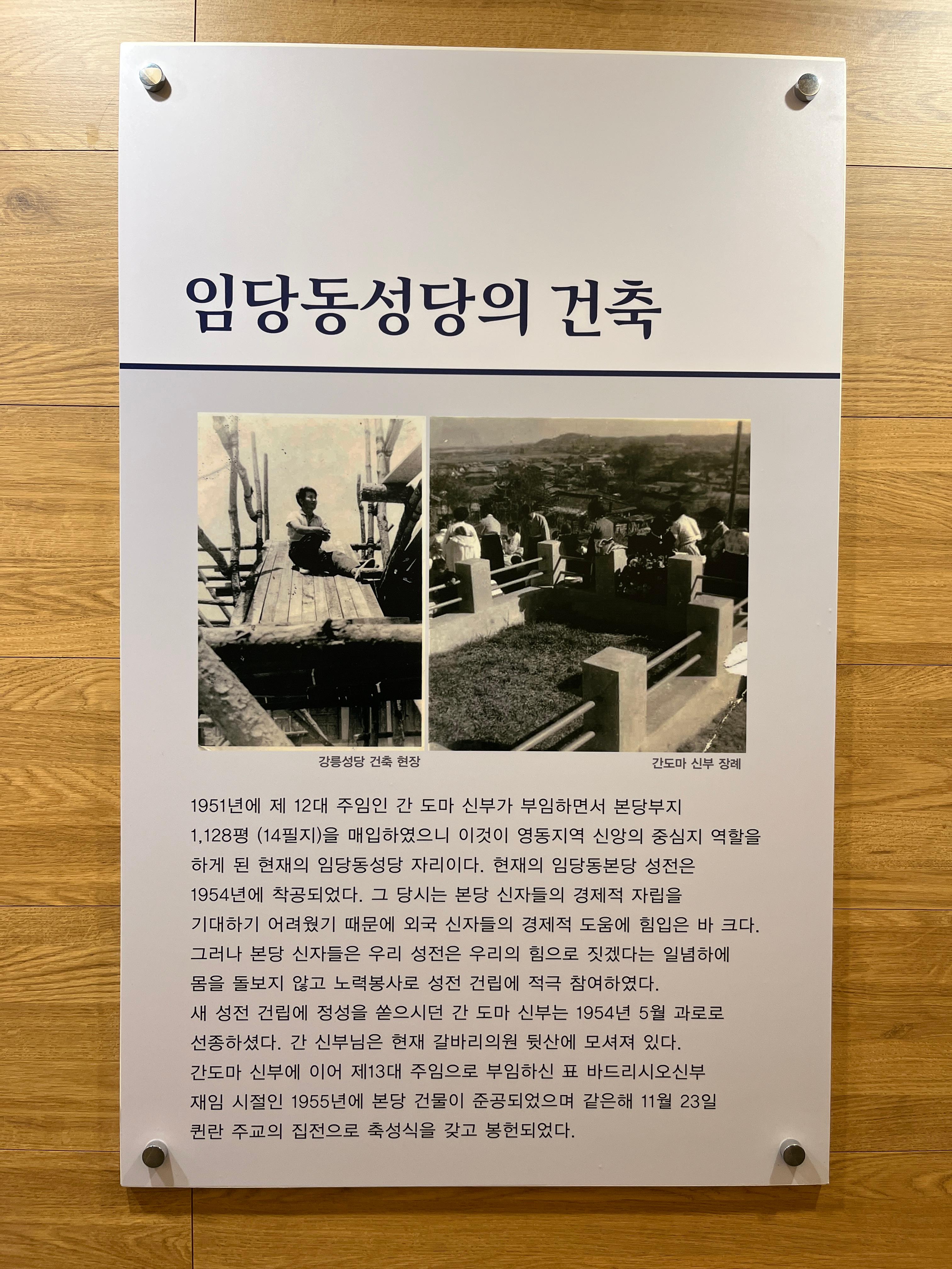 임당동성당 옆 건물에 있는 가톨릭역사박물관. 강릉 지역 가톨릭 역사에 대한 설명과 유물이 잘 정리되어 있다. 1층 사무실에 방문해 말씀드리면 전시실 문을 열어주시며, 월요일과 화요일은 휴무일, 점심 시간 등을 잘 피해서 가야 한다.