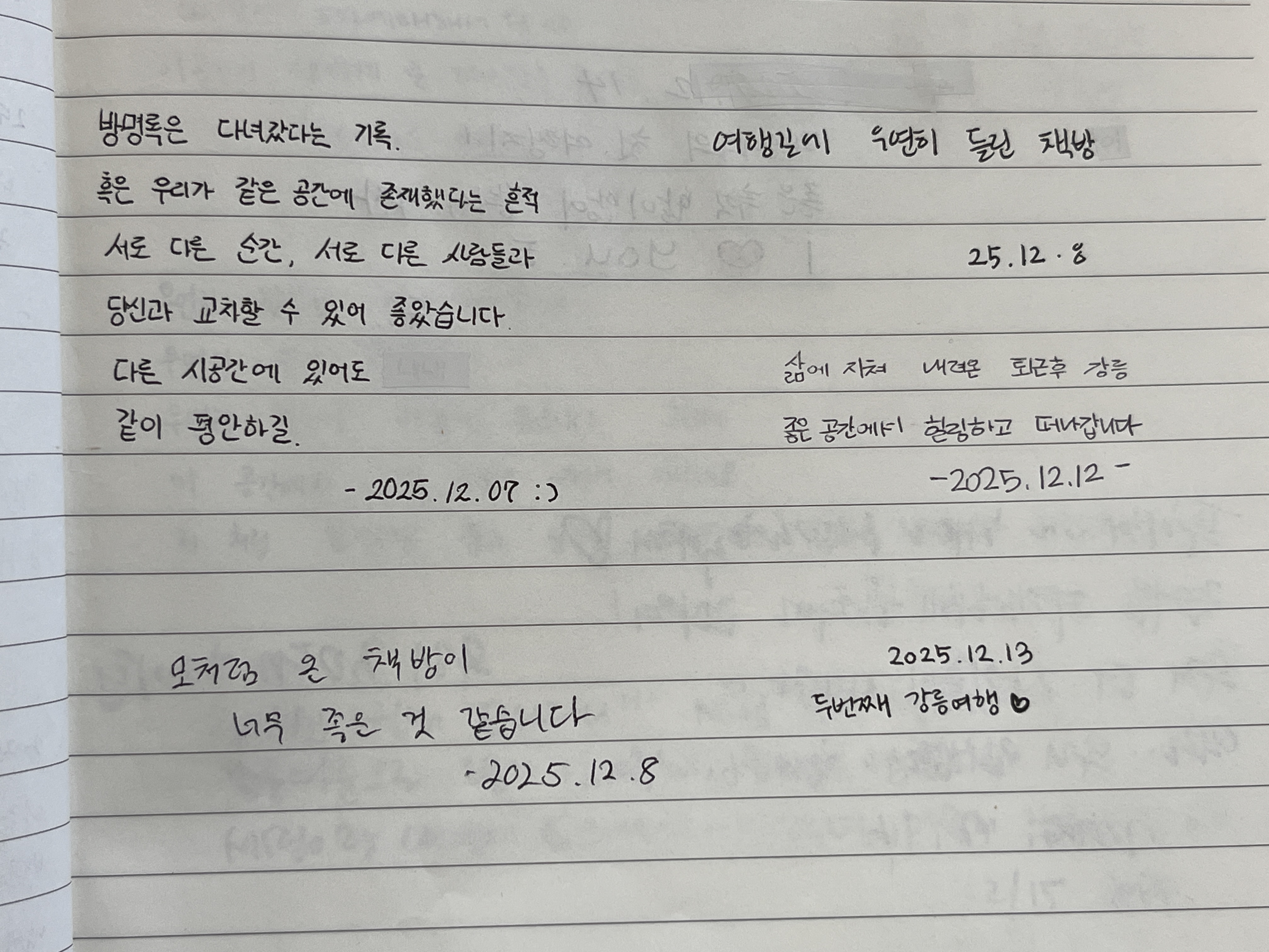 | 2025년 11월 강다방 이야기공장 방명록 (0) | 2025.12.02 |