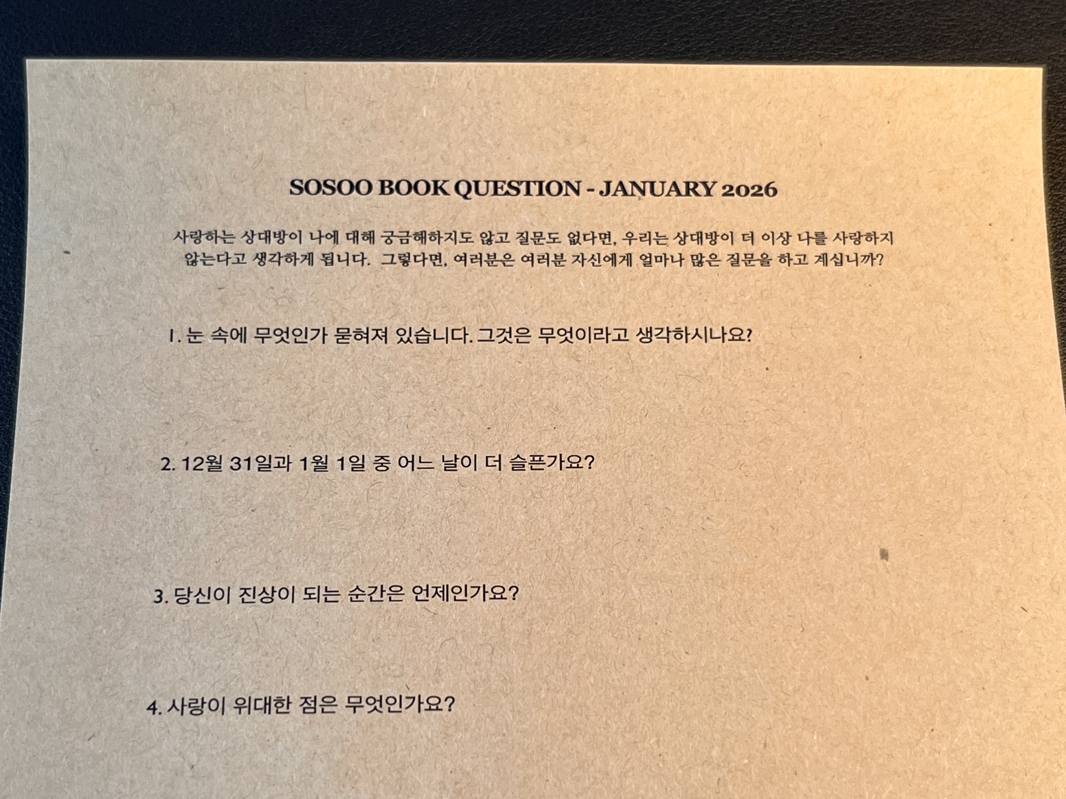 질문지 나눠주는 책방. 매달 모아진 질문지는 제본되어 책이 된다. 놀랍게도 이곳은 책이나 음료를 구매하지 않아도 시간제한 없이 자리에 앉아 책을 읽고 갈 수 있다.