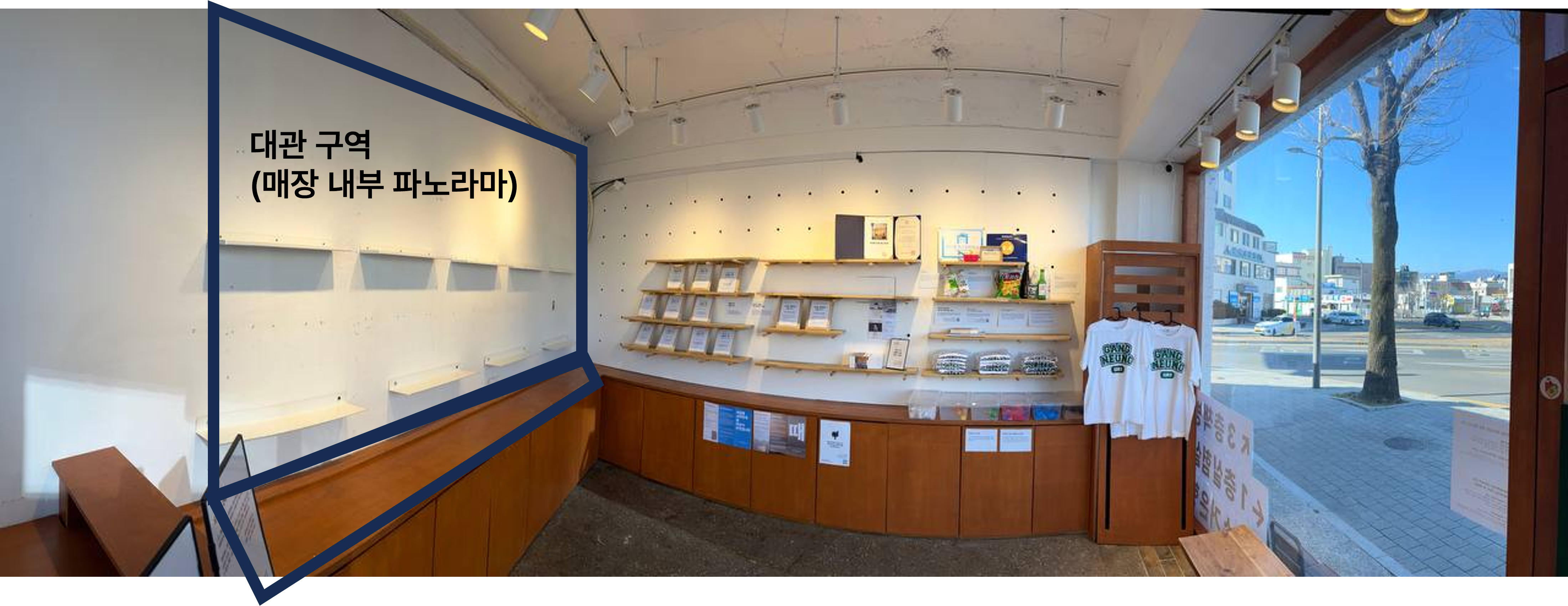 · 위치 : 강다방 이야기공장 1층 정면 벽과 선반 위