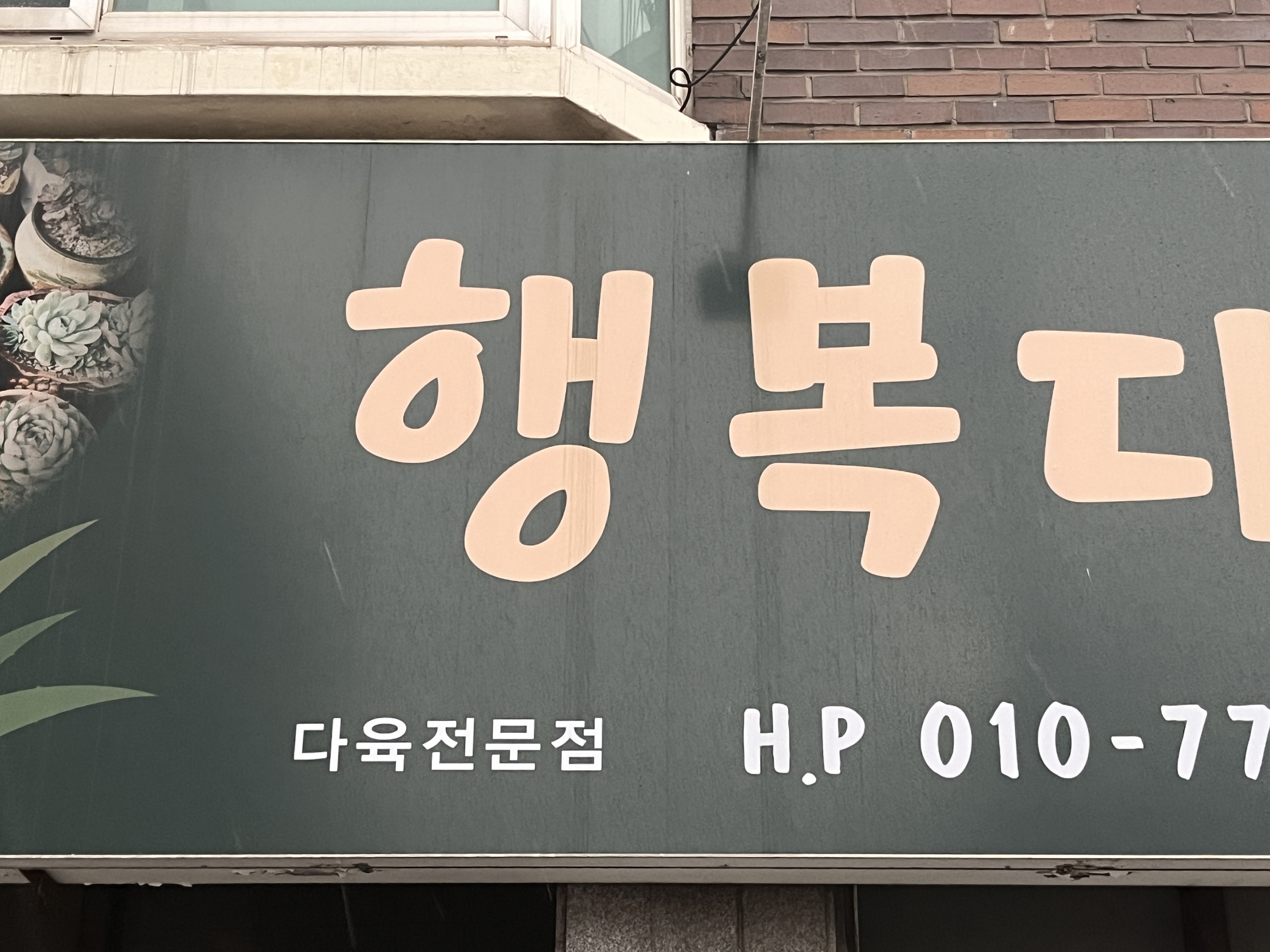 이번 달 편지 주제는 행복입니다. 주변에 있는 '행복'이란 글자를 사진 찍고 행복에 대해 글을 쓰기로 했는데 말글터 정과장님은 행복 찾기에 실패했다는 소식을 들었습니다. 저는 정과장님이 일하는 말글터 바로 앞 건물에서 '해피유통'을 발견했는데... 유감입니다. (웃음)