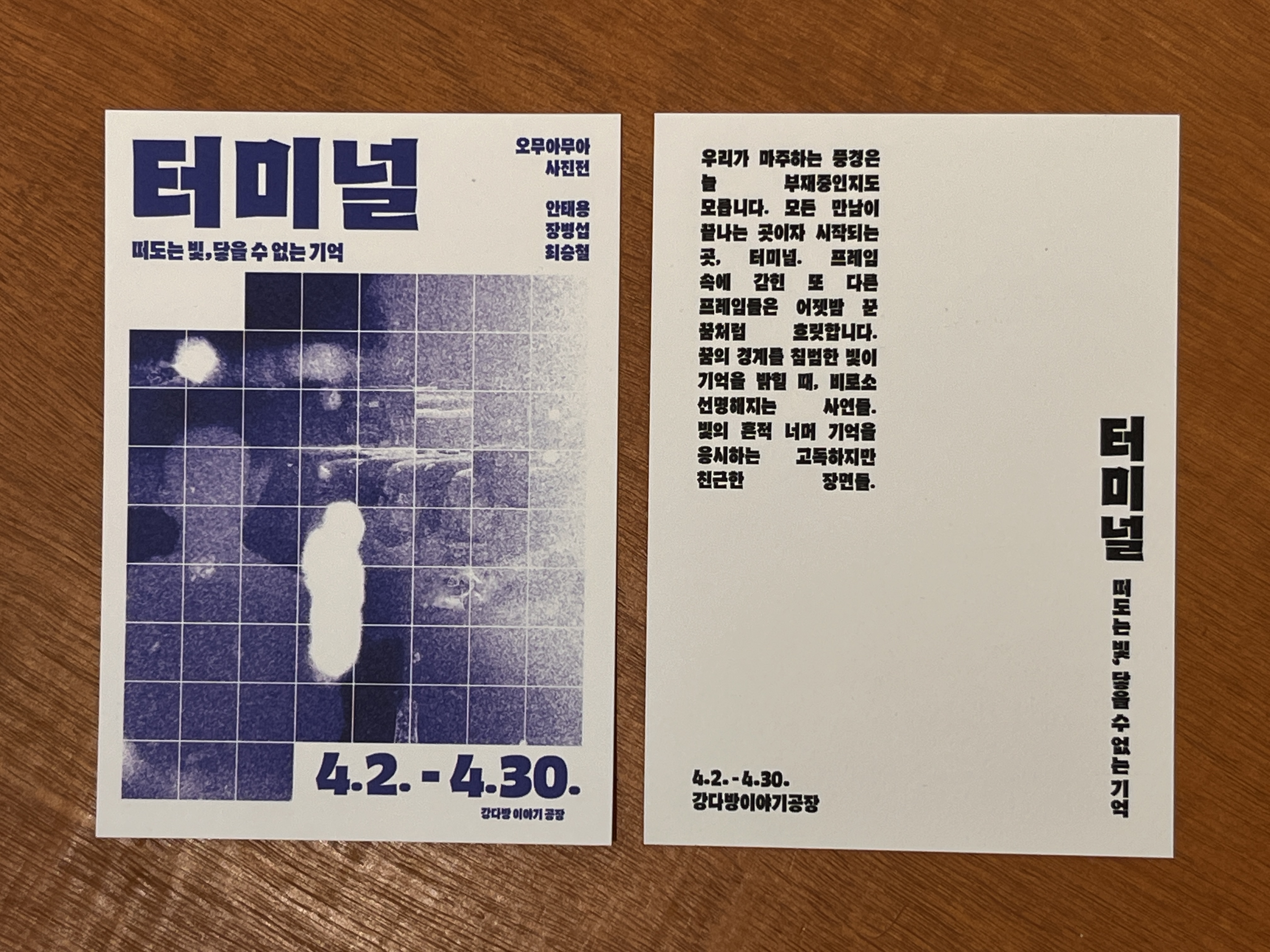 공항, 기차역, 버스터미널은 시작과 끝이 있는 장소입니다. 그래서 그곳에는 만남과 이별, 설렘과 아쉬움이 머뭅니다. 이번 사진전을 기획한 오무아무아는 강릉버스터미널이란 공간에서 [떠도는 빛과 닿을 수 없는 기억]을 프레임에 담아 기록했습니다. 강다방 이야기공장 1층 실험실에서 터미널을 거쳐 간 빛과 기억의 조각들을 만나보세요.