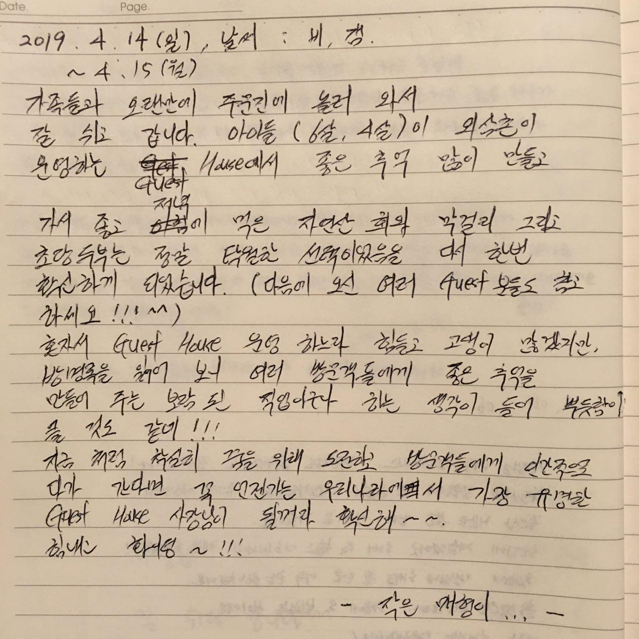 방명록을 읽어보니 여러 방문객들에게 좋은 추억을 만들어주는