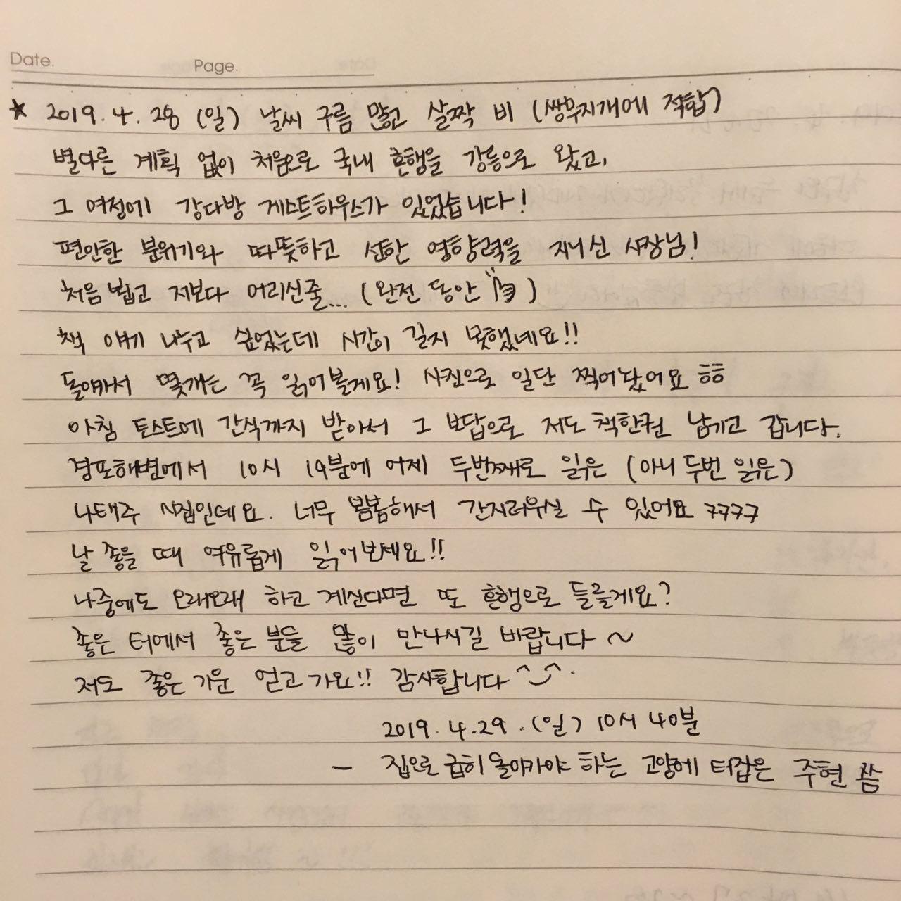 | 2019년 5월 강다방 게스트하우스 방명록 (0) | 2019.06.06 |