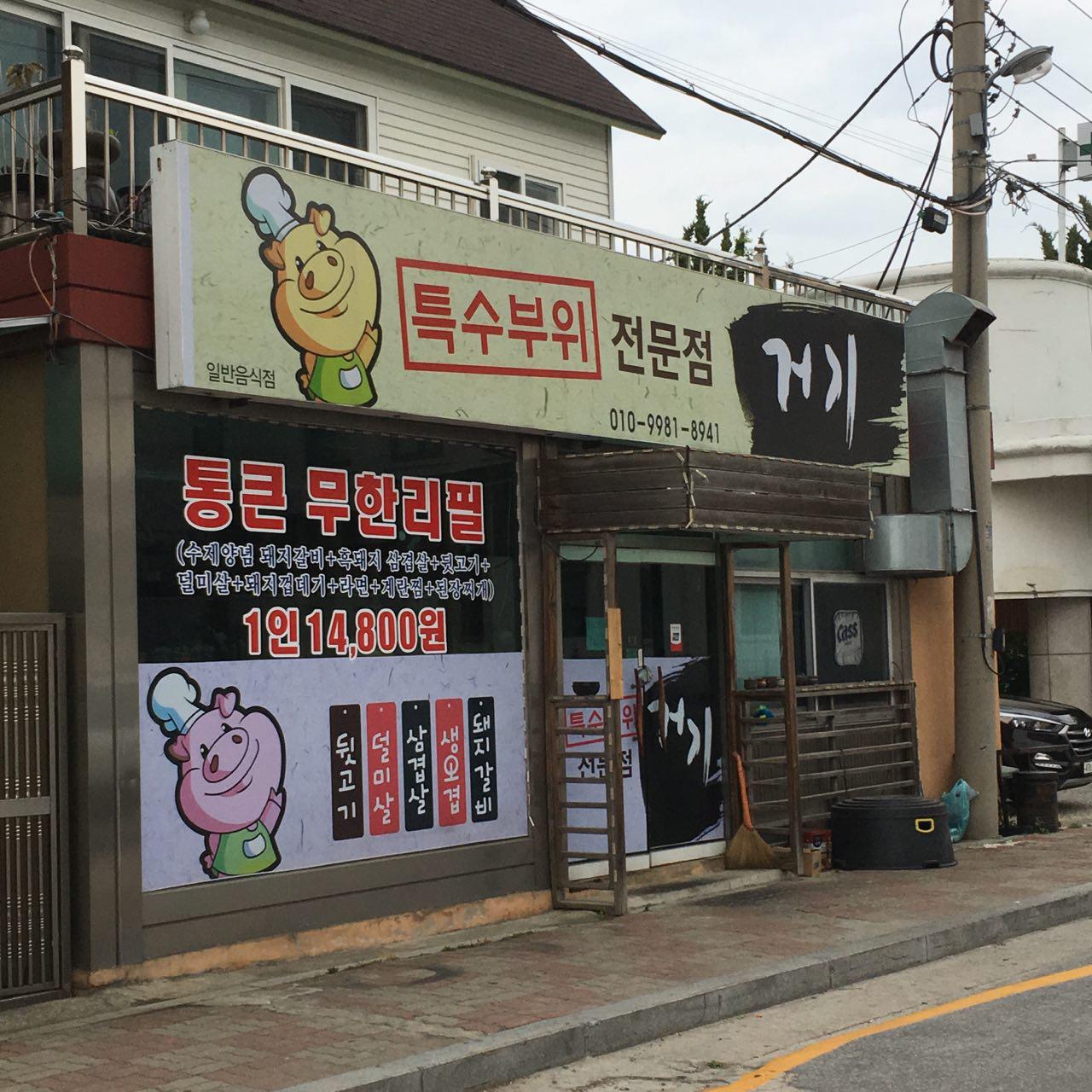 주문진 명주교육도서관 근처에 위치한 고기집. 원래는 특수부위 전문점이었는데 최근 고기 무한리필집으로 업종을 바꿨다. 상추와 고추, 마늘, 양파 등 밑반찬의 종류도 많은 편이고 라면도 무제한으로 끓여먹을 수 있다.