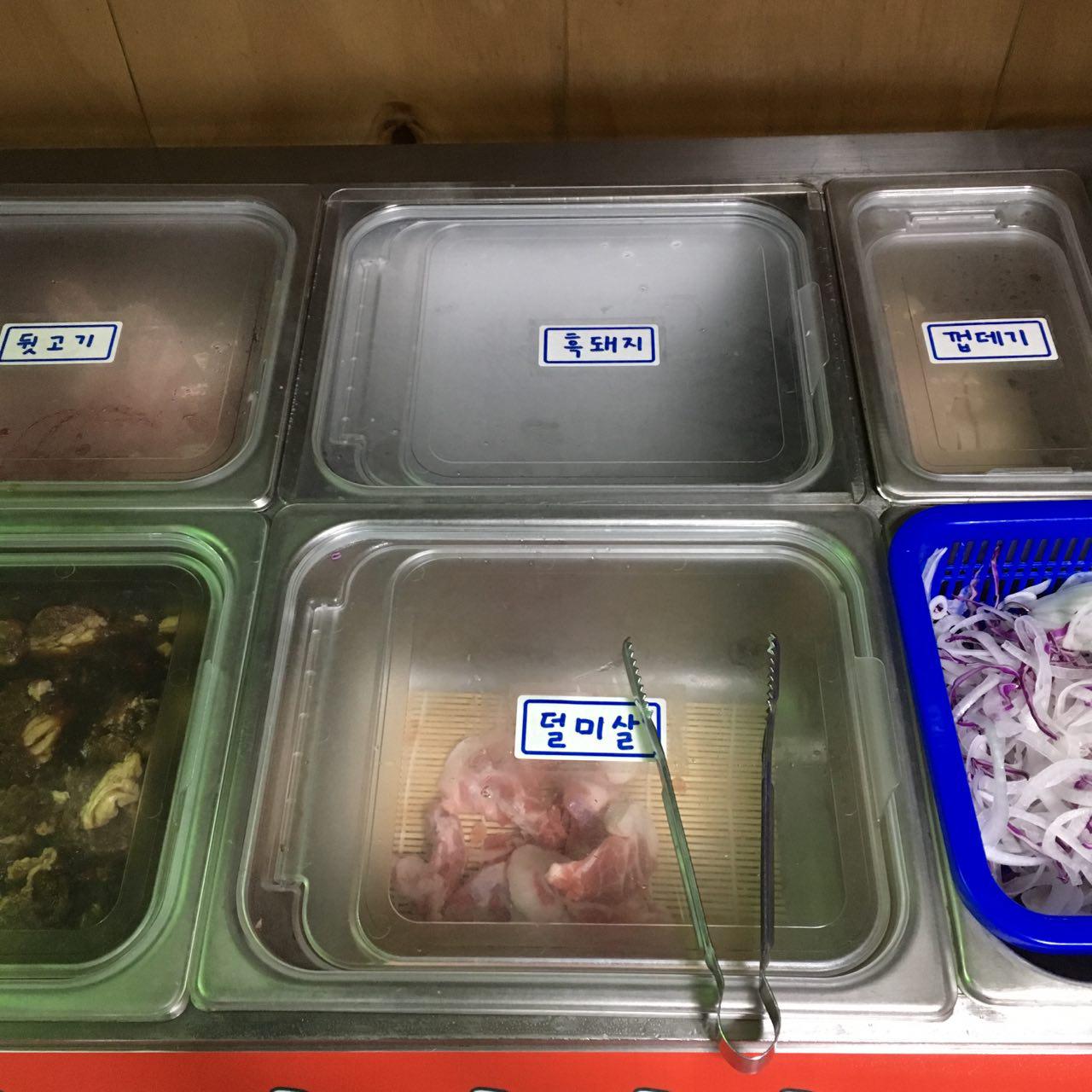 수제 돼지 갈비 + 이베리코 흑돼지 + 덜미살 + 뒷고기 + 돼지껍데기 + 라면 + 된장찌개 + 계란찜