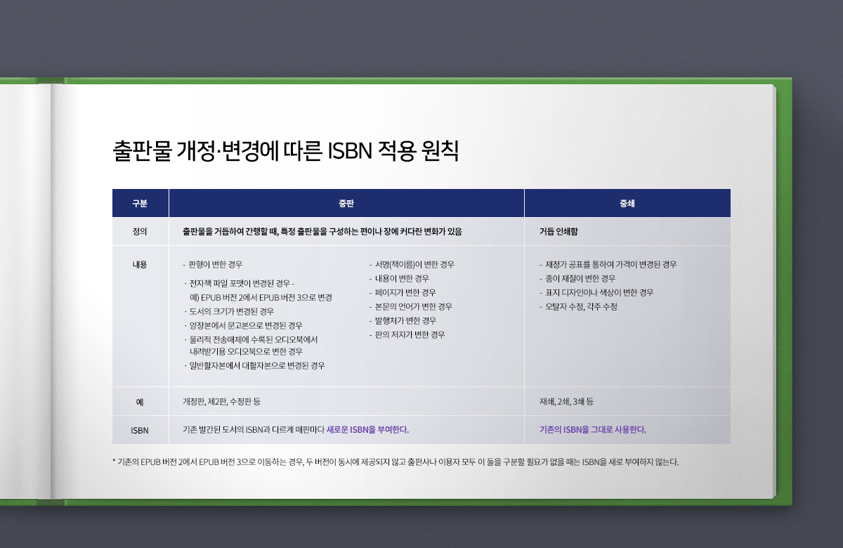 출판물 개정/변경에 따른 ISBN 적용 원칙