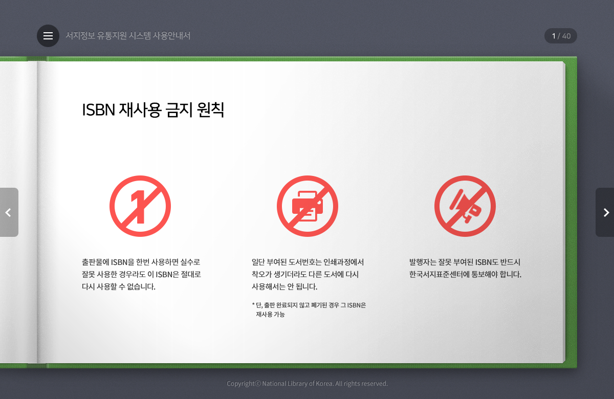 발행자는 잘못 부여된 ISBN도 반드시 한국서지표준센터에 통보해야 함.
