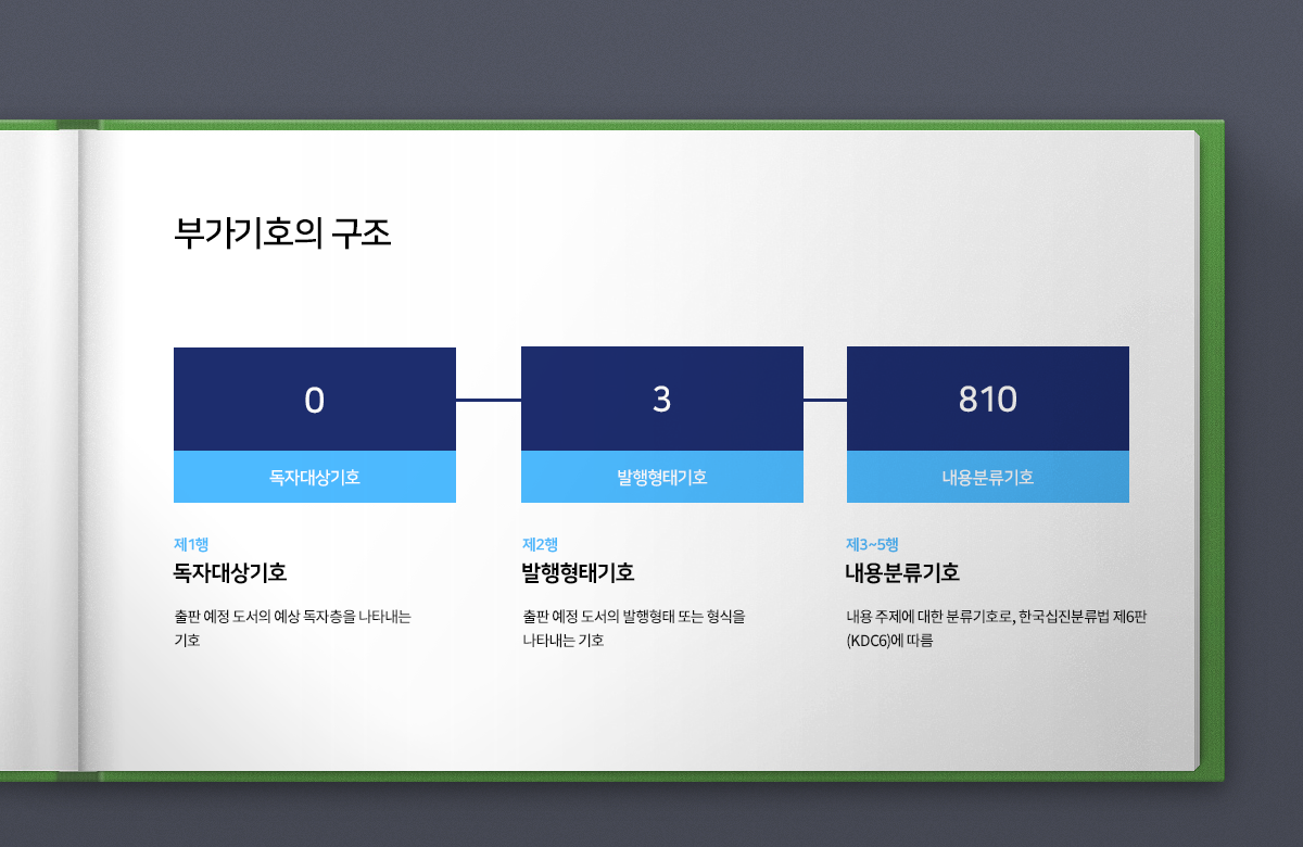우리나라에서 발행되는 도서에 국제표준도서번호(ISBN) 제도에 따라 번호 13자리를 부여하고, 5자리의 부가기호를 덧붙여 구성한 고유번호