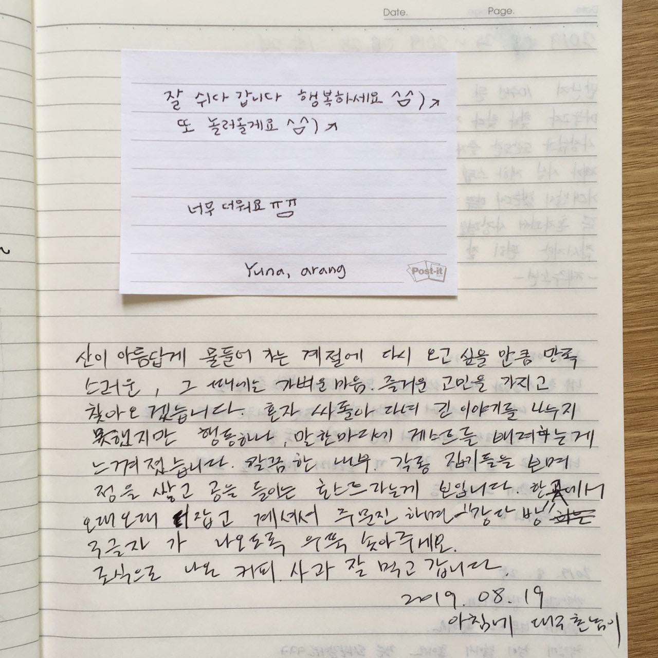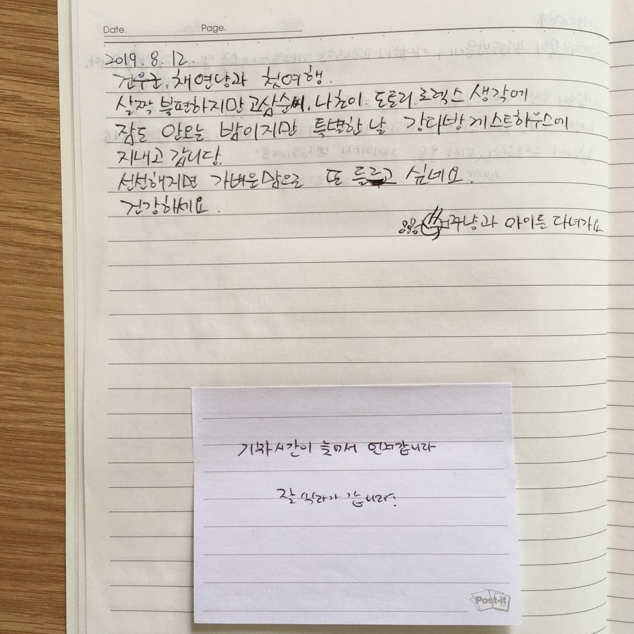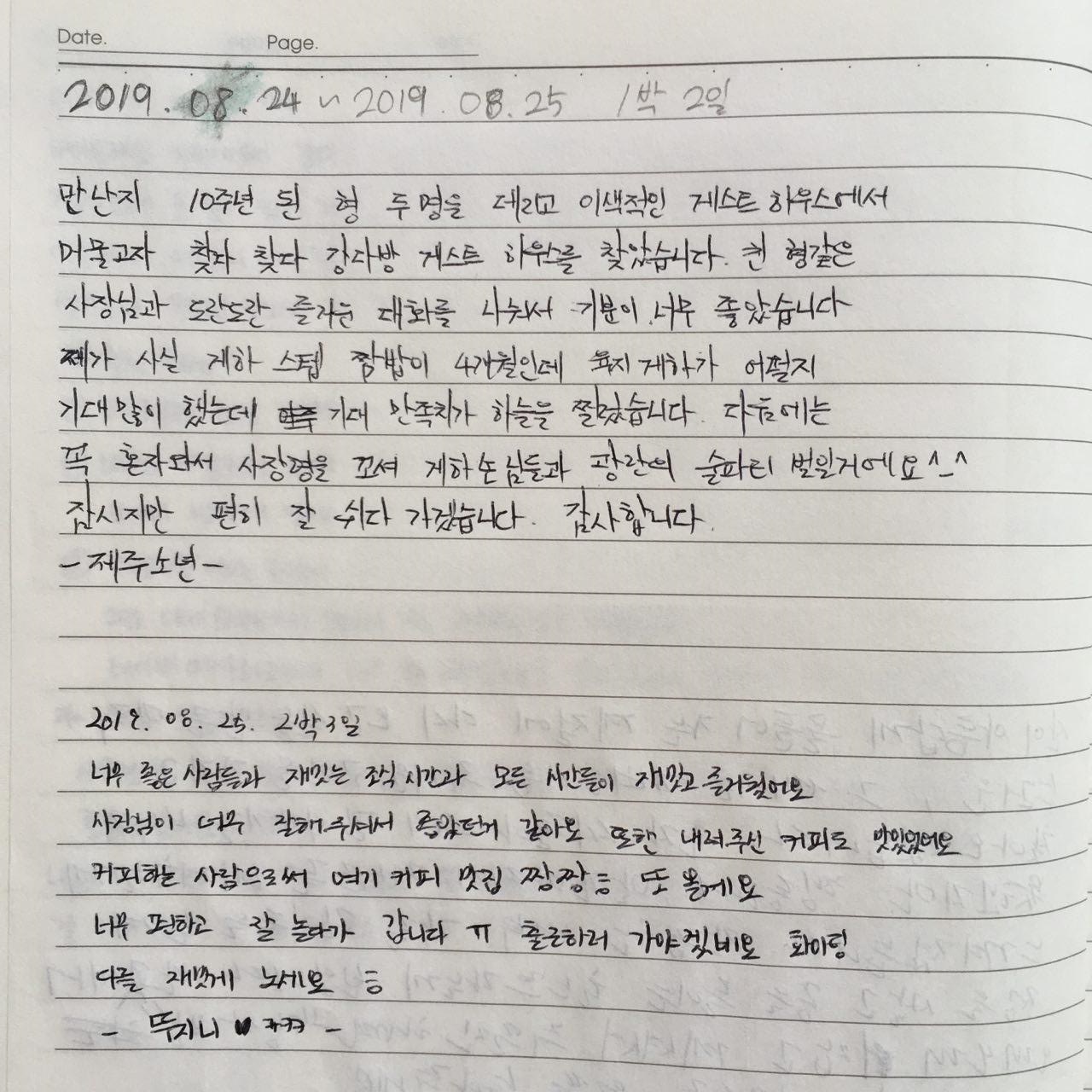 2019년 8월 강다방 게스트하우스 방명록