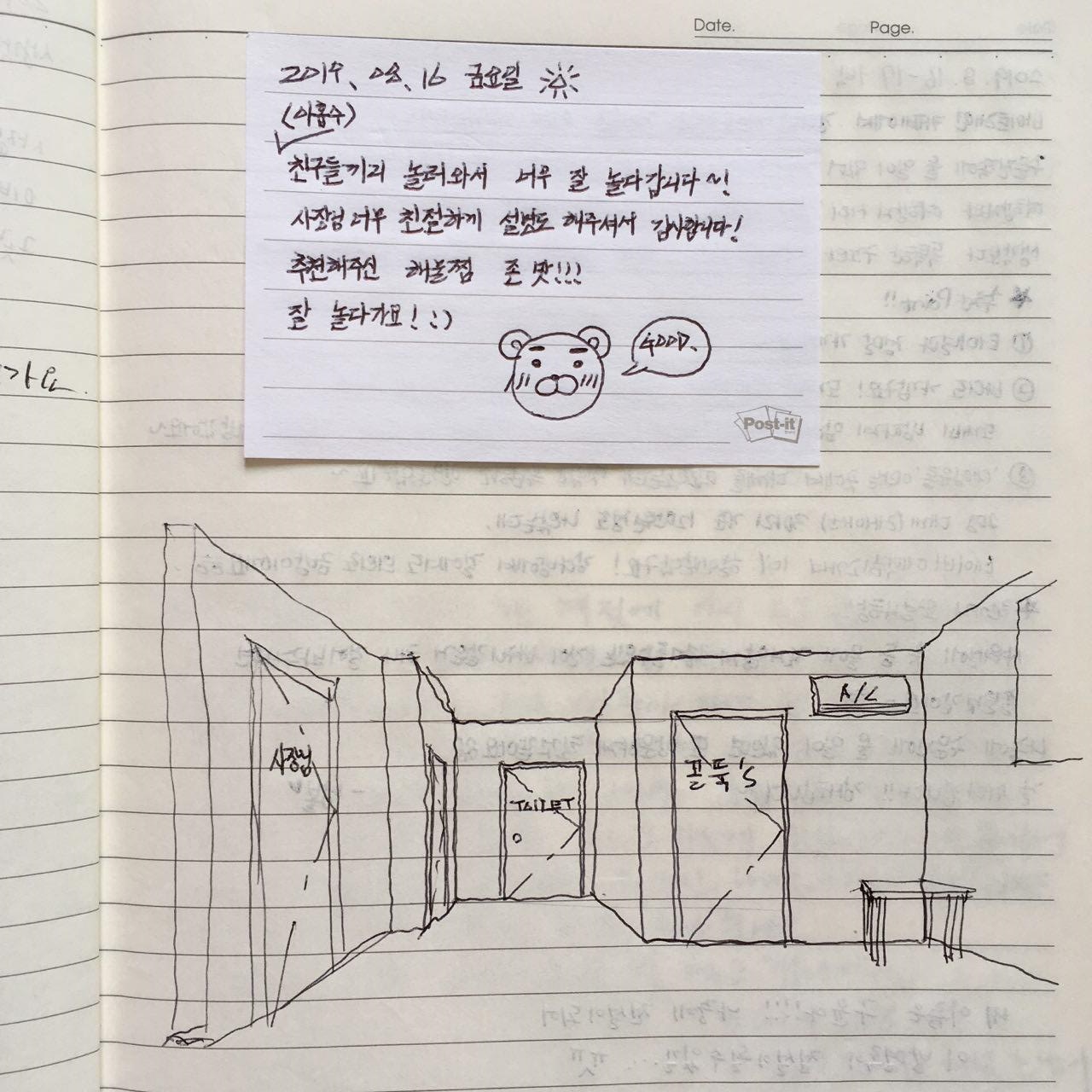 kangdbang guesthouse guestbook, August 2019