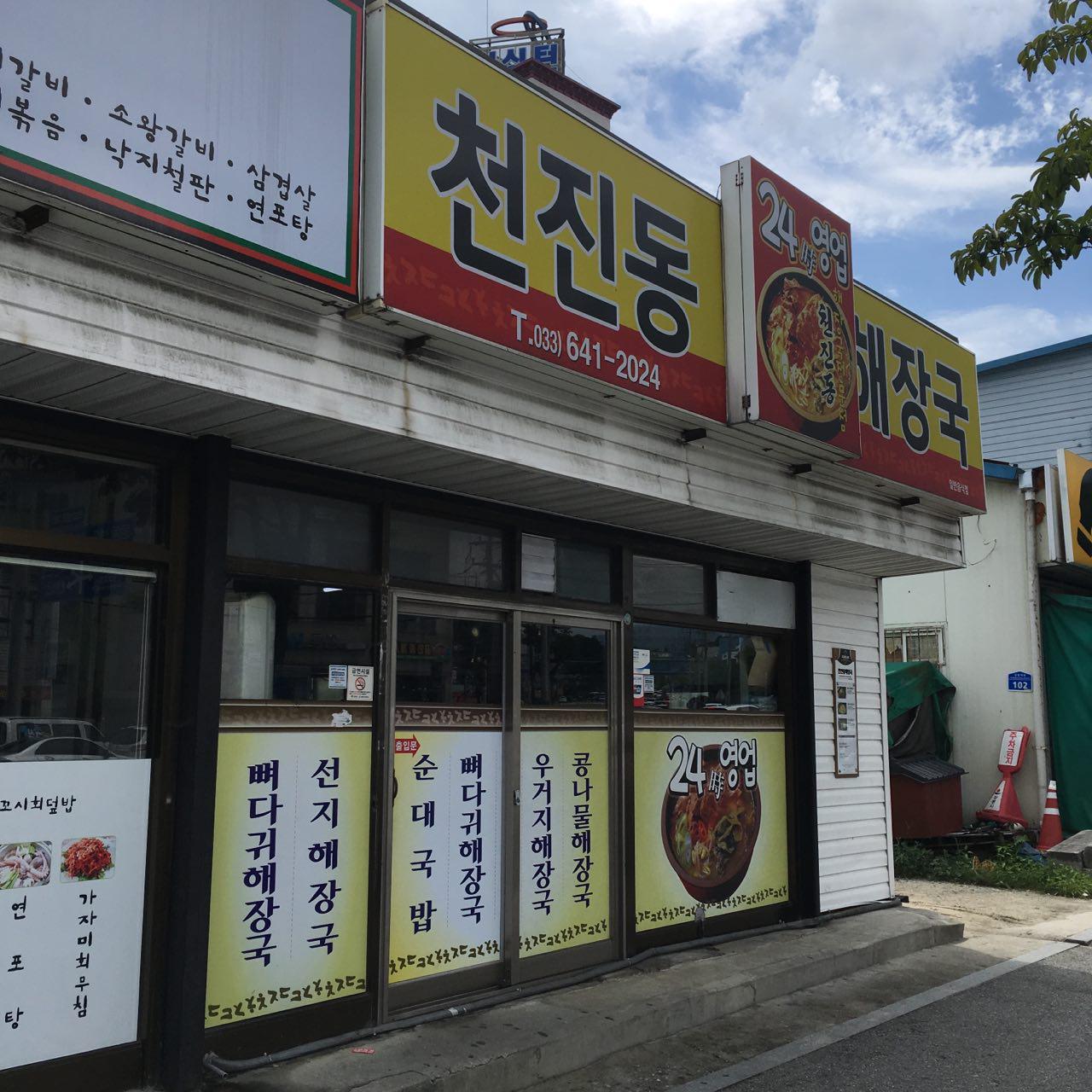 강릉 시외버스/고속버스 터미널 근처에 위치한 해장국집. 365일 24시간 영업한다. 이곳의 해장국은 붉은 해장국이 아닌 맑은 국물의 해장국이다.