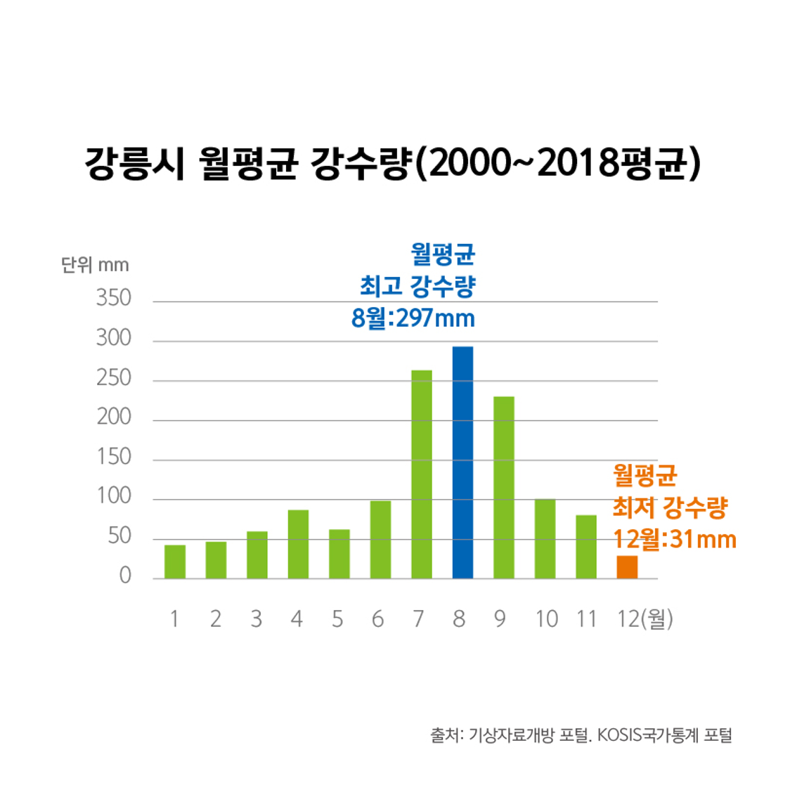 3-2. 강릉시 월평균 강수량 (단위 : mm, 2000~2018년 평균)