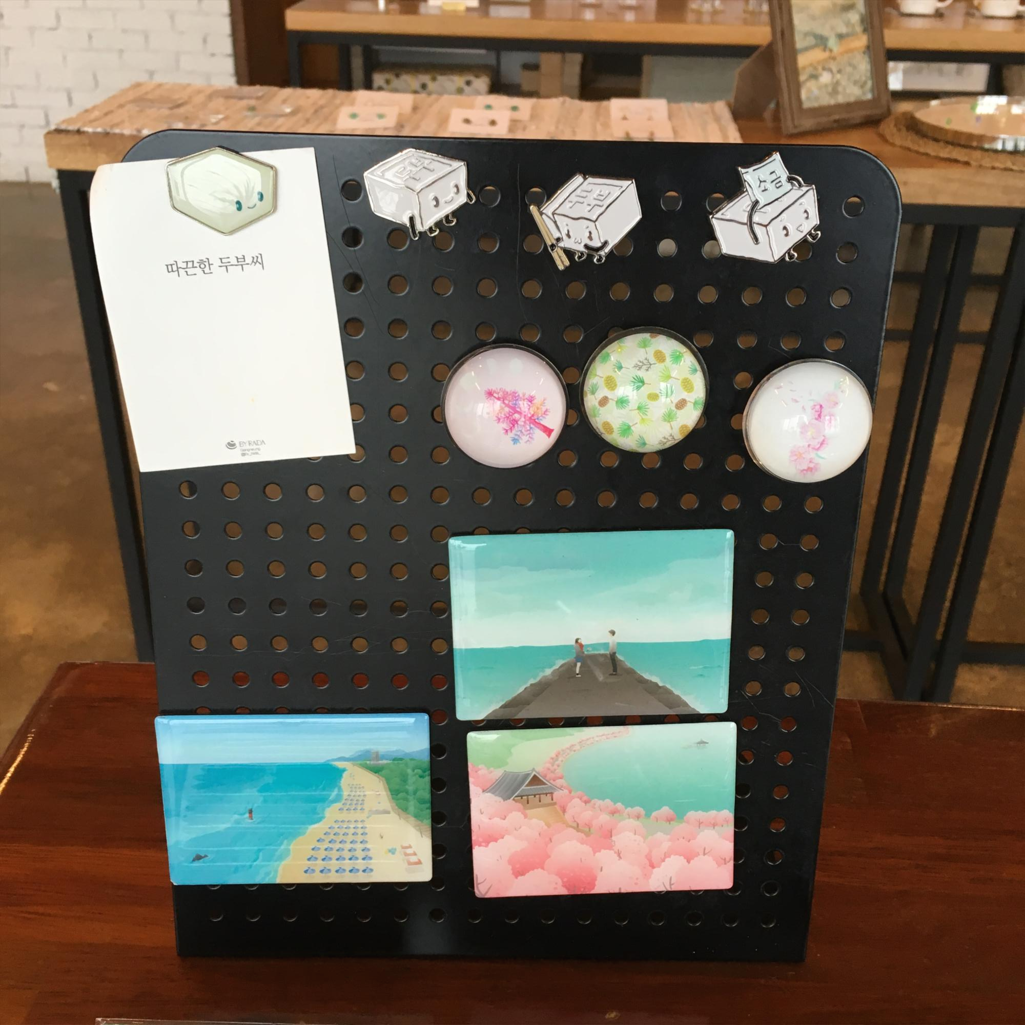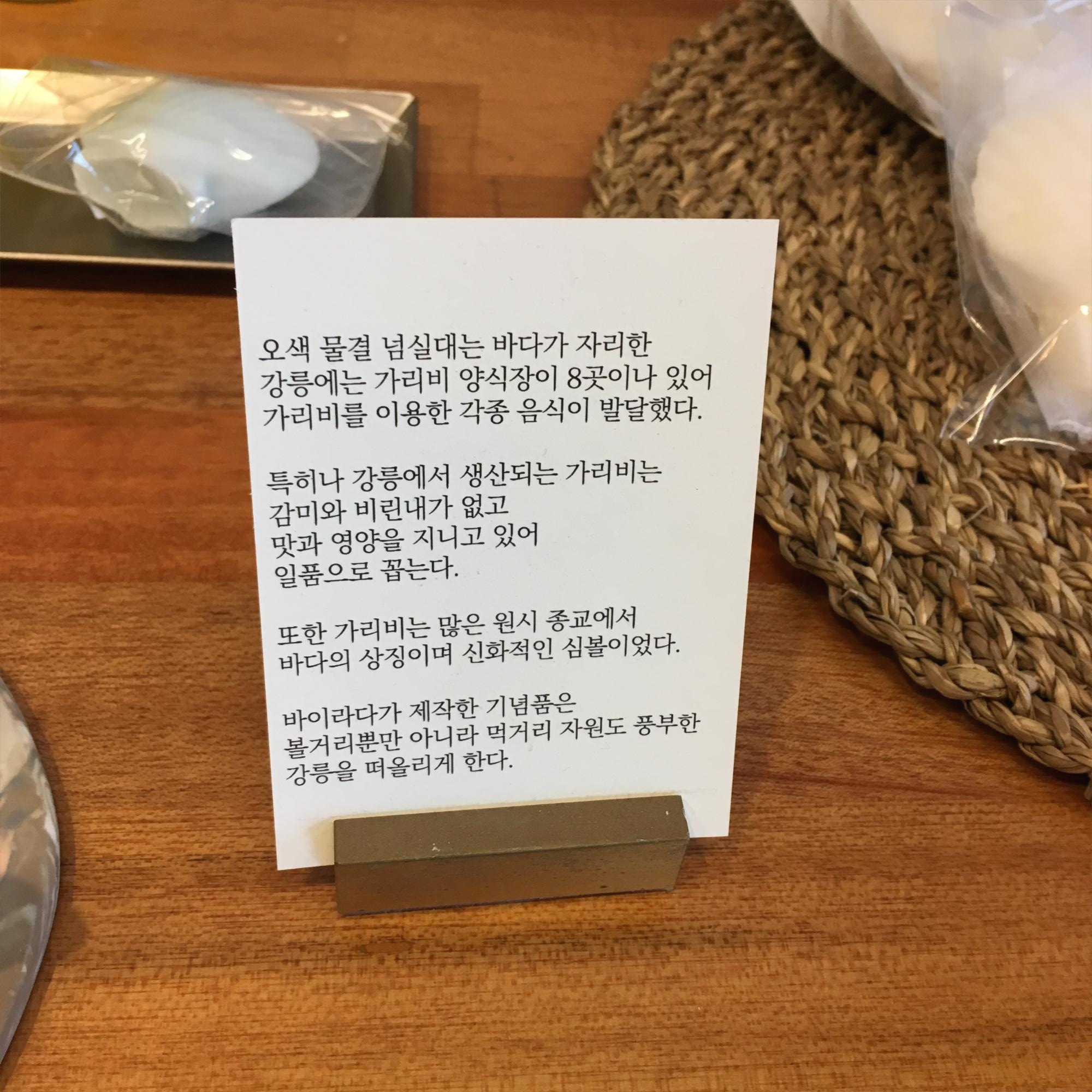강릉 사천해변에 위치한 강릉 기념품 전문점. 강릉 사투리, 강릉 바다, 강릉 역사 등에서 영감을 얻은 디자인 기념품들을 제작 판매하고 있다. 사천해변은 강릉 내에서도 잘 알려져있지 않아 한적하고 깨끗한데, 창문 너머로 보는 바다가 특히 멋지다.