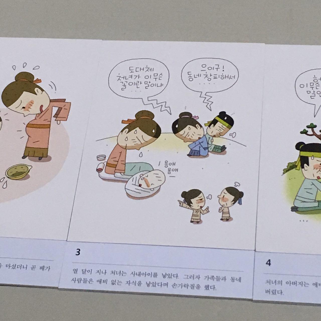 3. 열 달이 지나 처녀는 사내아이를 낳았다. 그러자 가족들과 동네사람들은 애비 없는 자식을 낳았다며 손가락질을 했다.