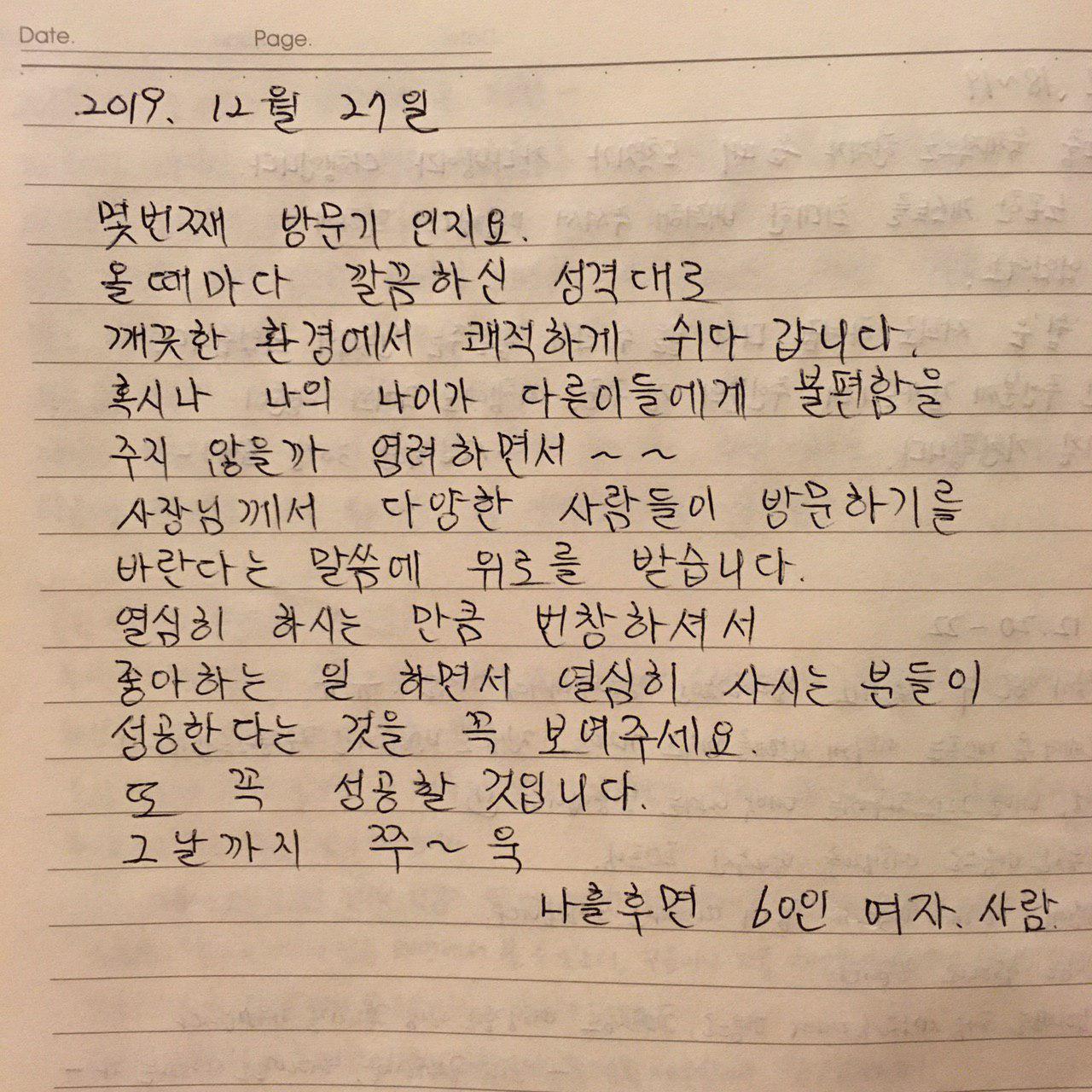 kangdbang guesthouse guestbook, December 2019
