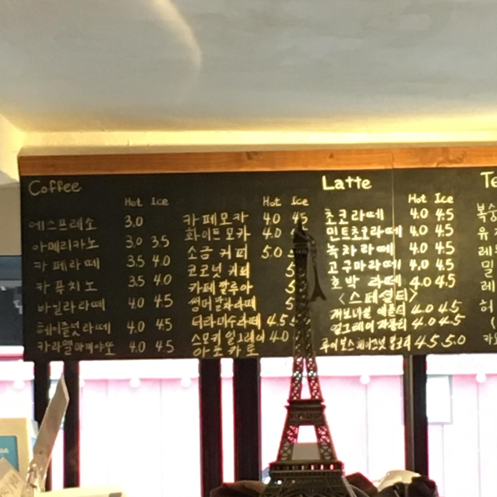 메뉴 및 가격 Menu with Prices :