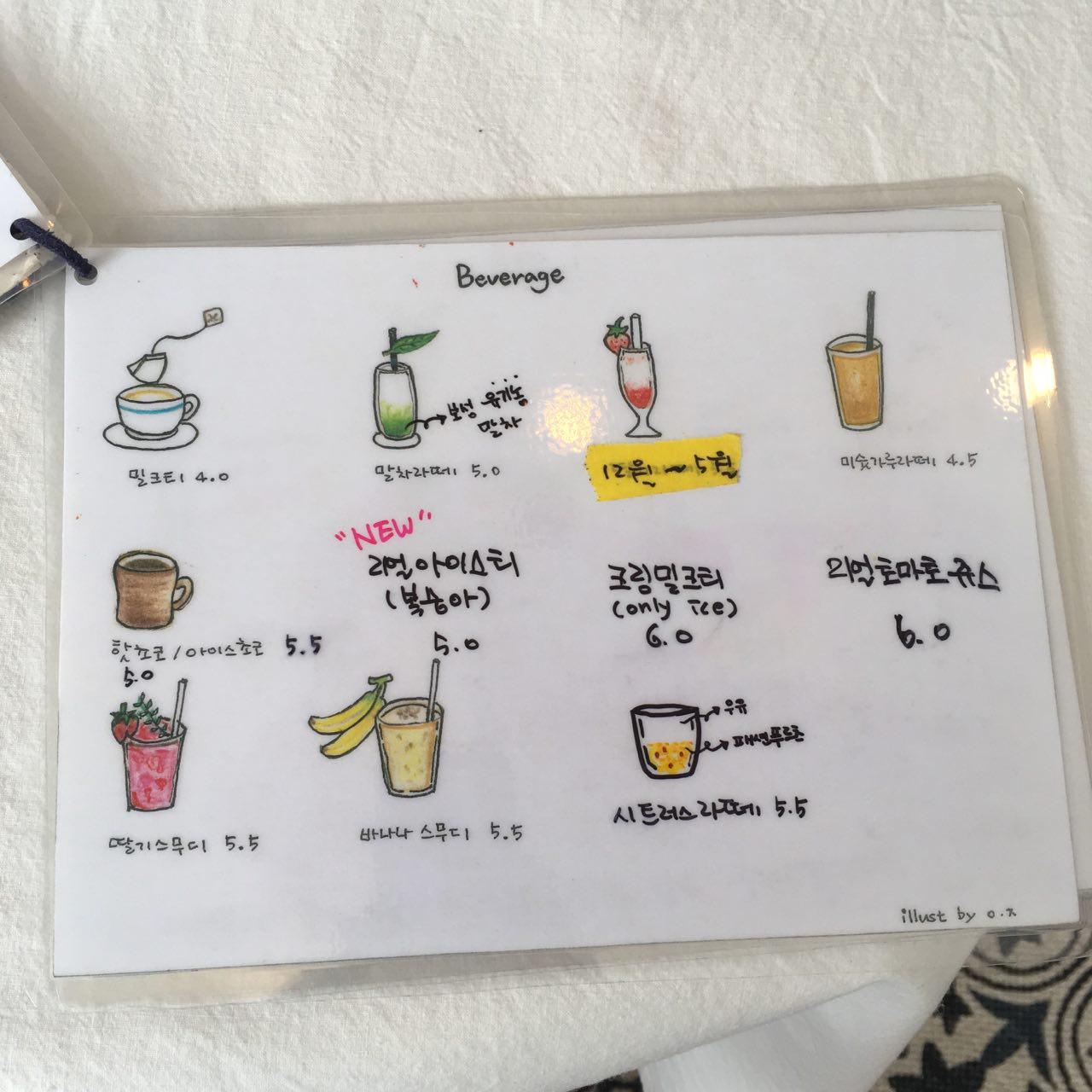 메뉴 및 가격 Menu with Prices :