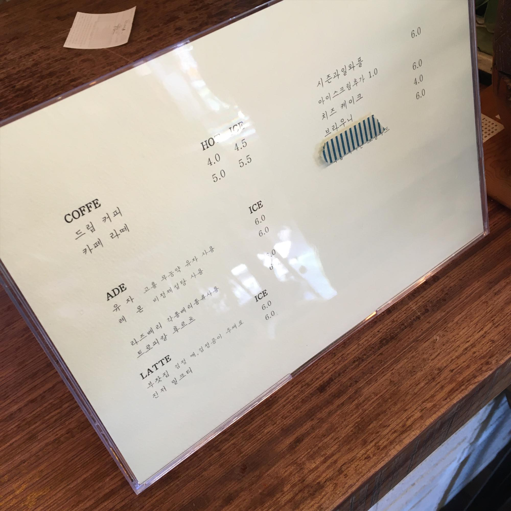 메뉴 및 가격 Menu with Prices :